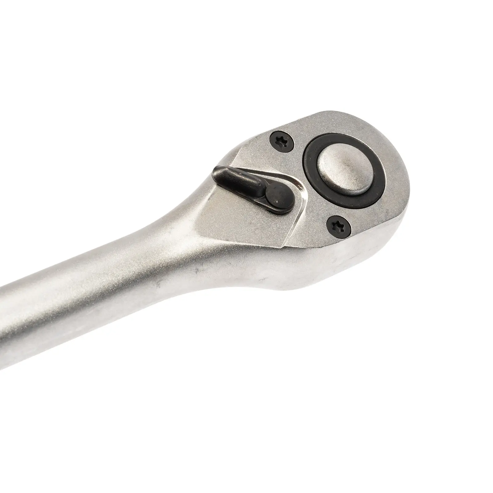Ráčna s 36 zuby a přepínací páčkou.Chromový povrch odolný proti korozi. Aretace pevně drží hlavici na čtyřhranu a vylučuje samovolné uvolnění.Rychlá a snadná výměna hlavice pomocí pojistky.