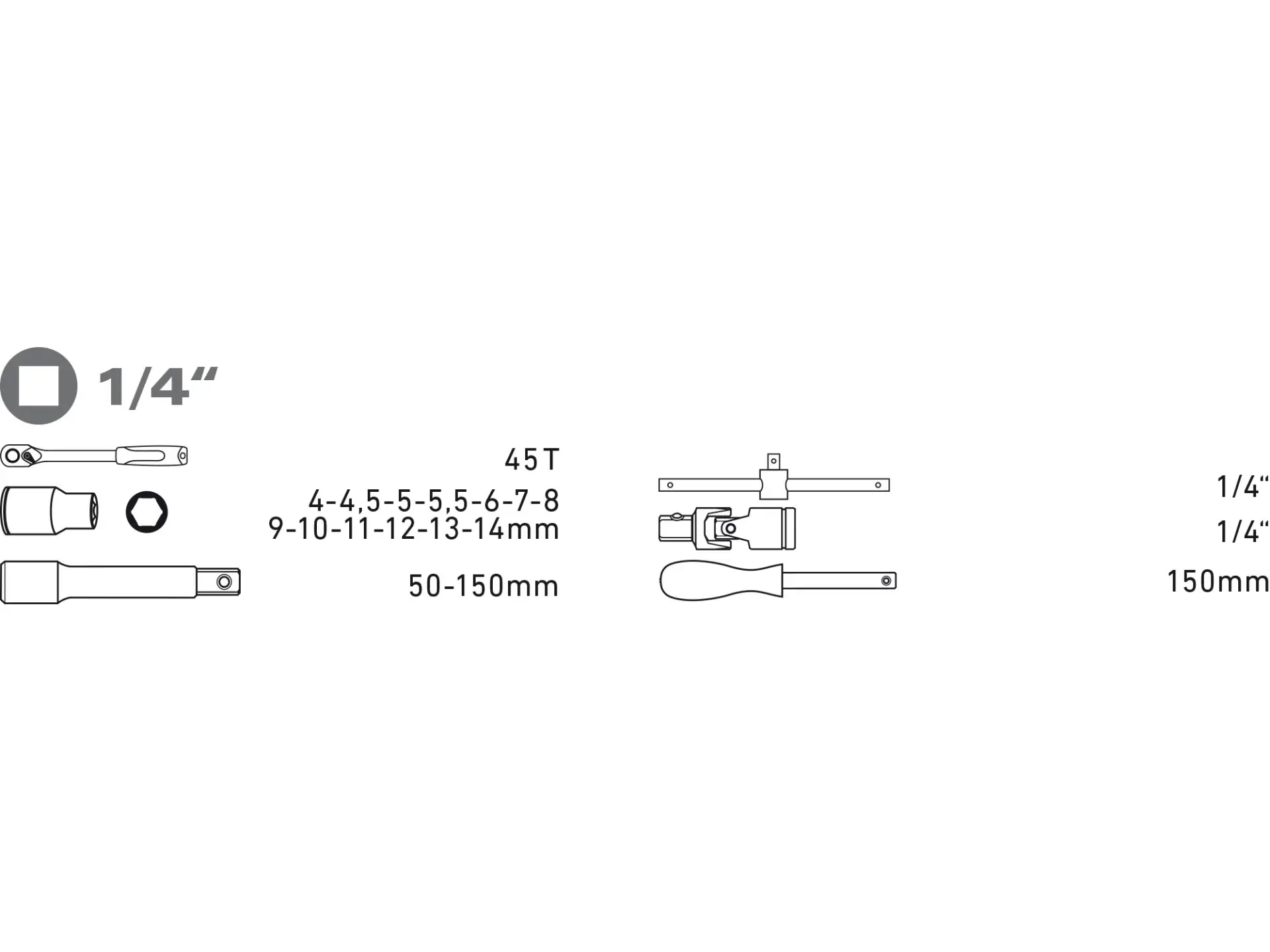 1/4": 4-4.5-5-5.5-6-7-8-9-10-11-12-13-14mm