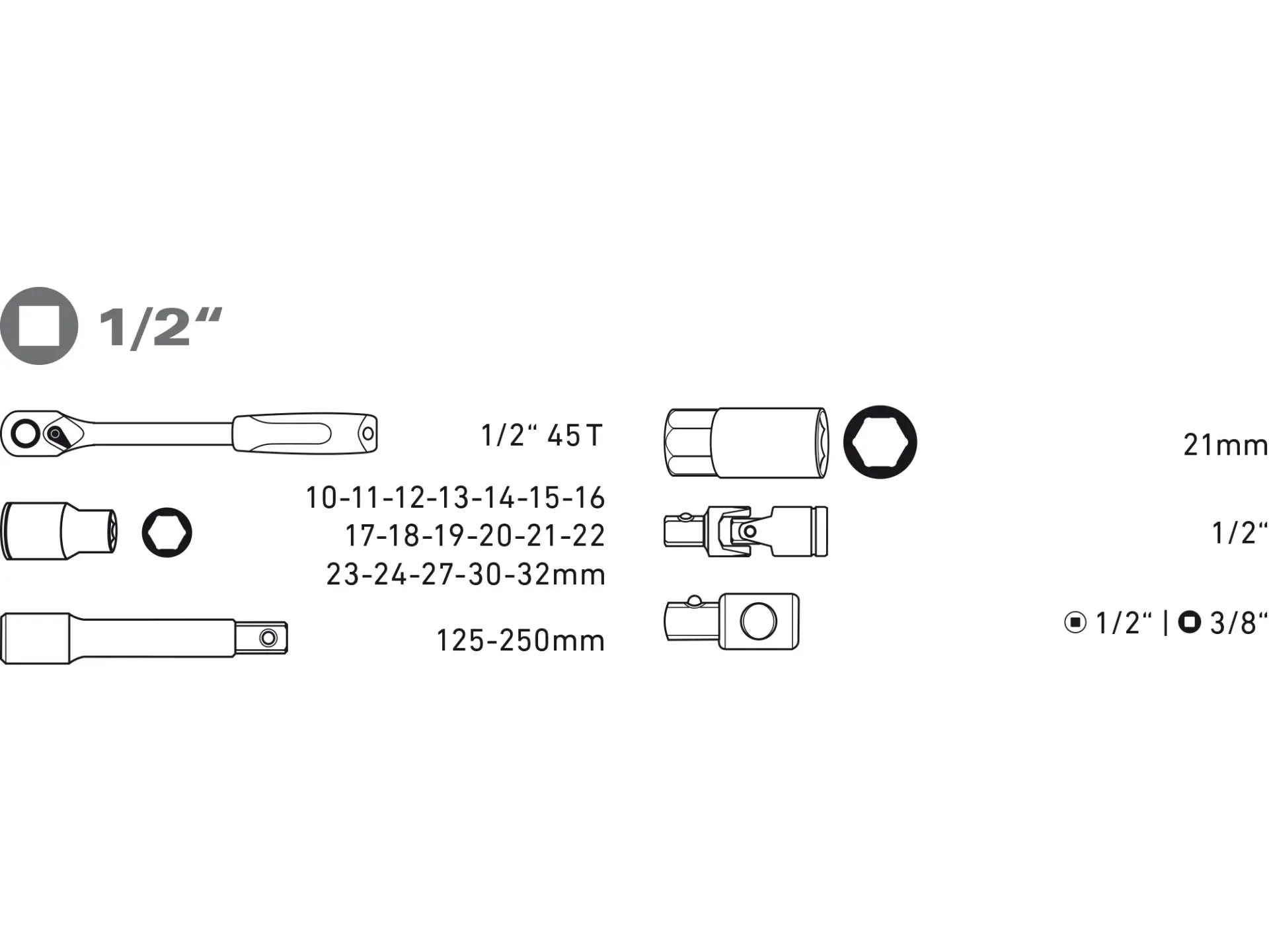 1/2": 10-11-12-13-14?-15-16-17-18-19-20-21-22-23-24-27-30-32mm