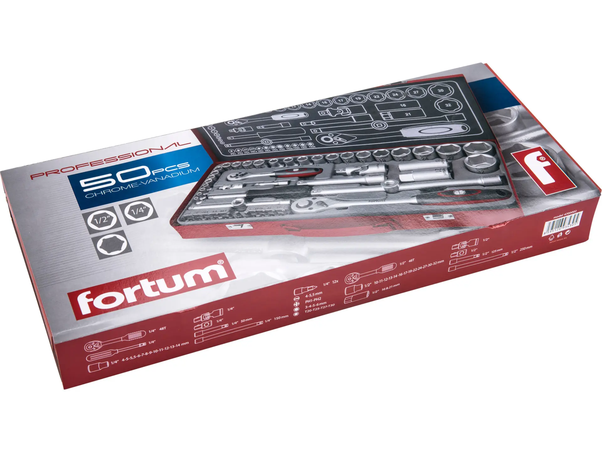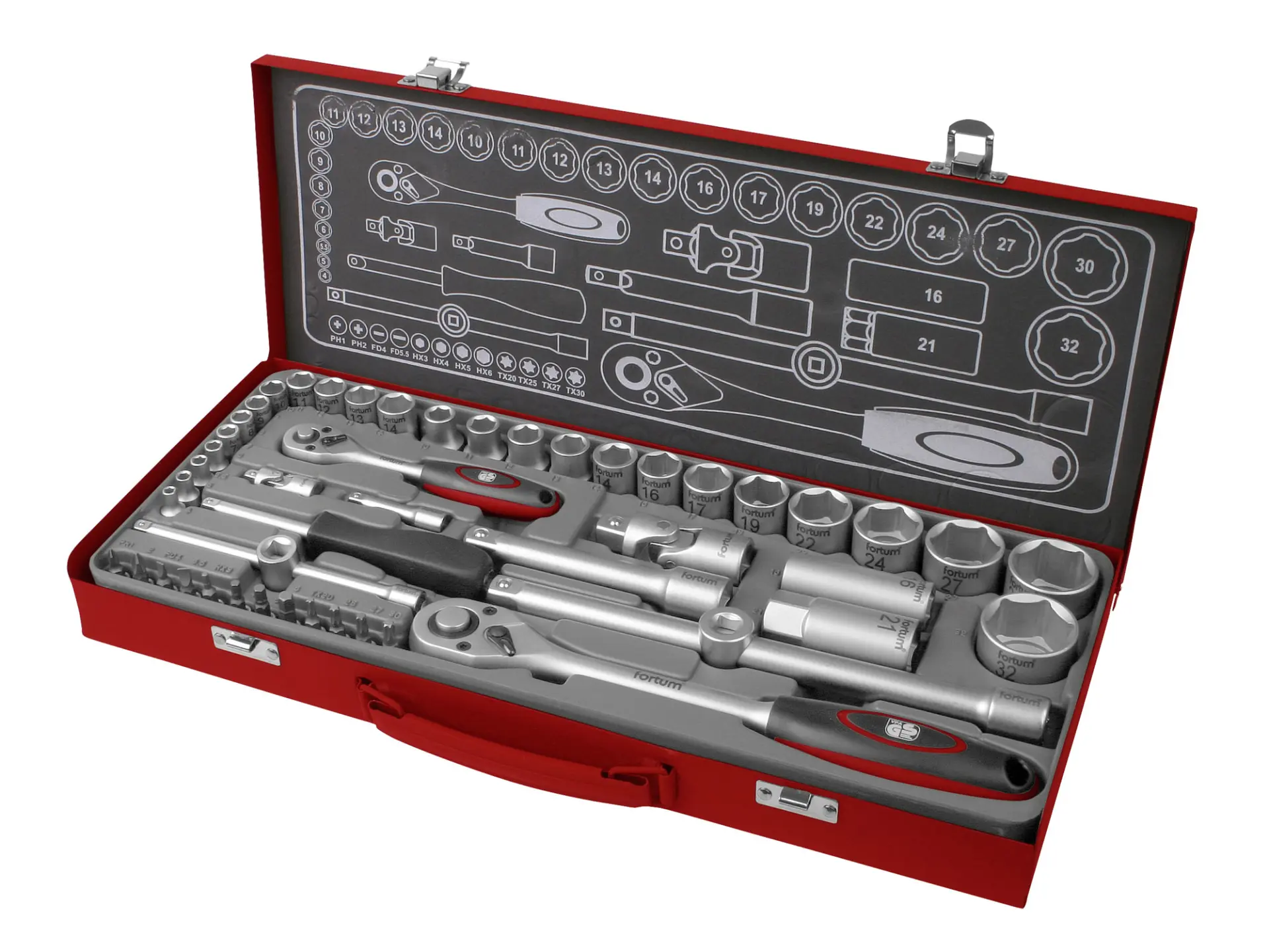 Pro extrémní zatížení v průmyslové sféře jsou speciálně navržené sady Fortum Industrial. Také u těchto sad jsou všechny komponenty vyrobeny ze špičkové oceli 61CrV5 se zvláštním vytvrzením exponovaných částí. Klíčovým komponentem je všek opět masivní ráčna: ta je u sad Fortum Industrial charakteristická 48 cementovanými zuby z oceli S2 a prodlouženou rukojetí, která umožňuje ještě lepší využití Vaší síly při těžkém nasazení.