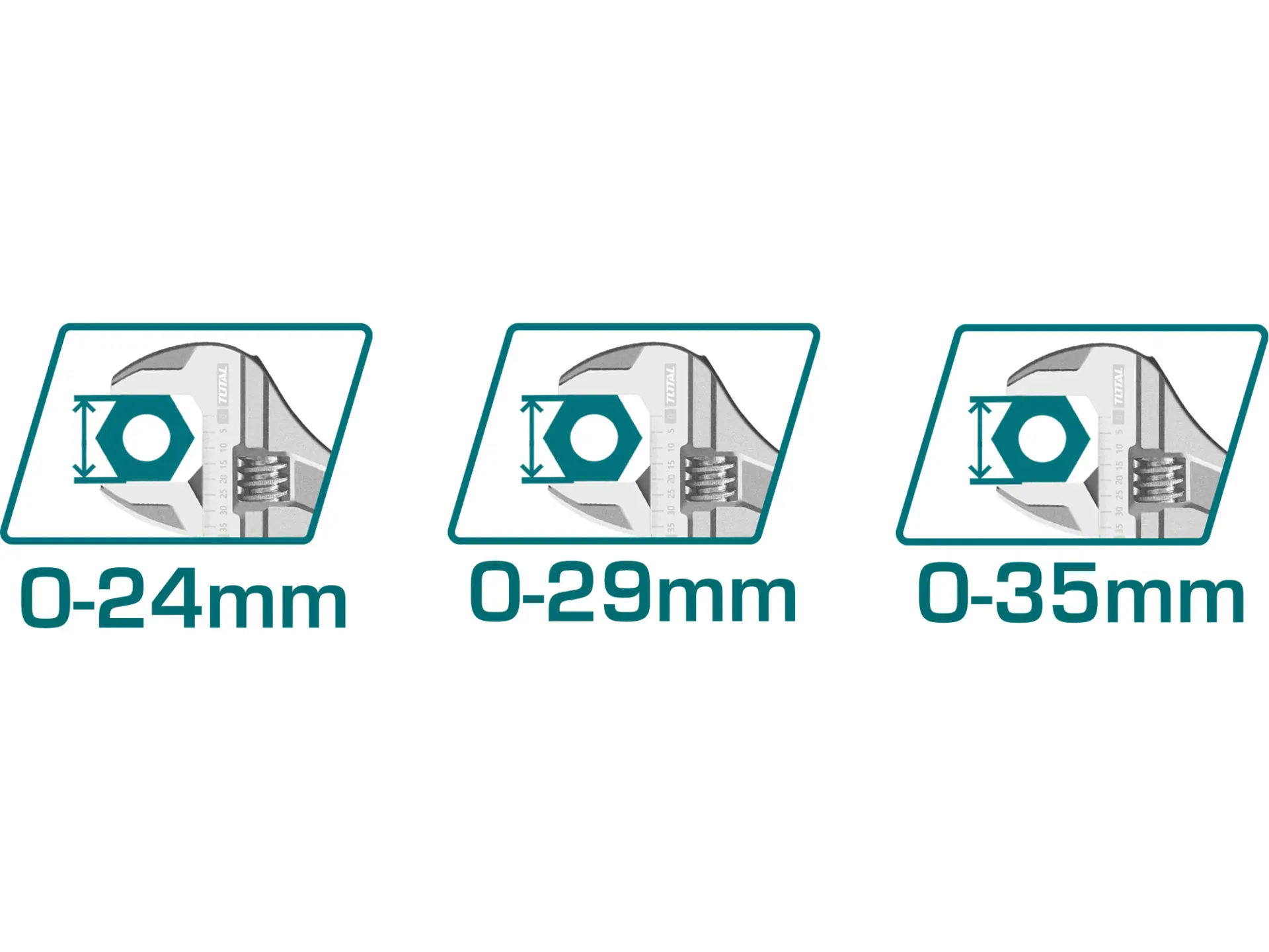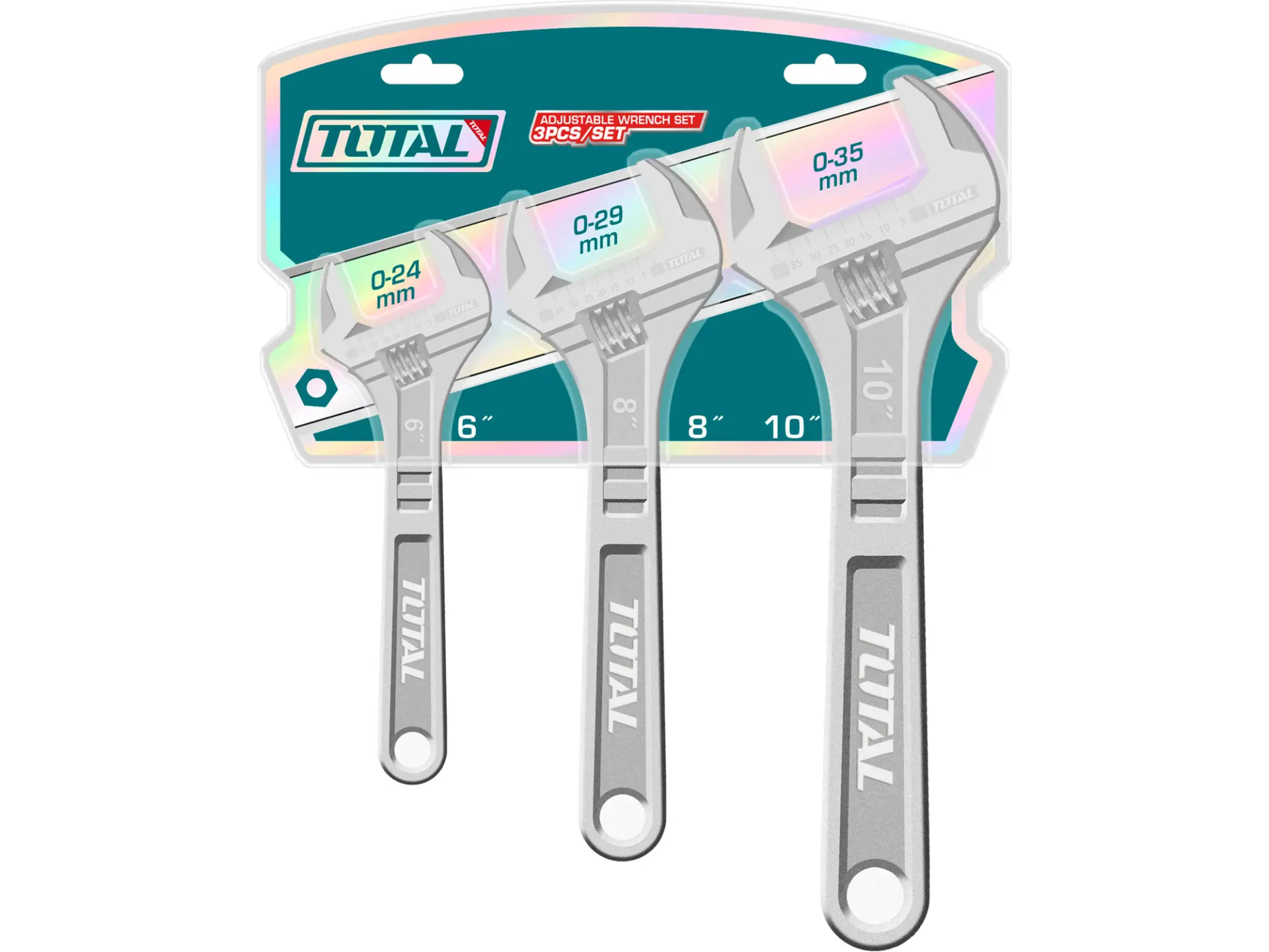 Sada 3ks nastavitelných klíčů velikosti 150mm, 200mm, 250mm. Nastavitelné rozpětí je 0-19mm, 0-24mm, 0-30mm.