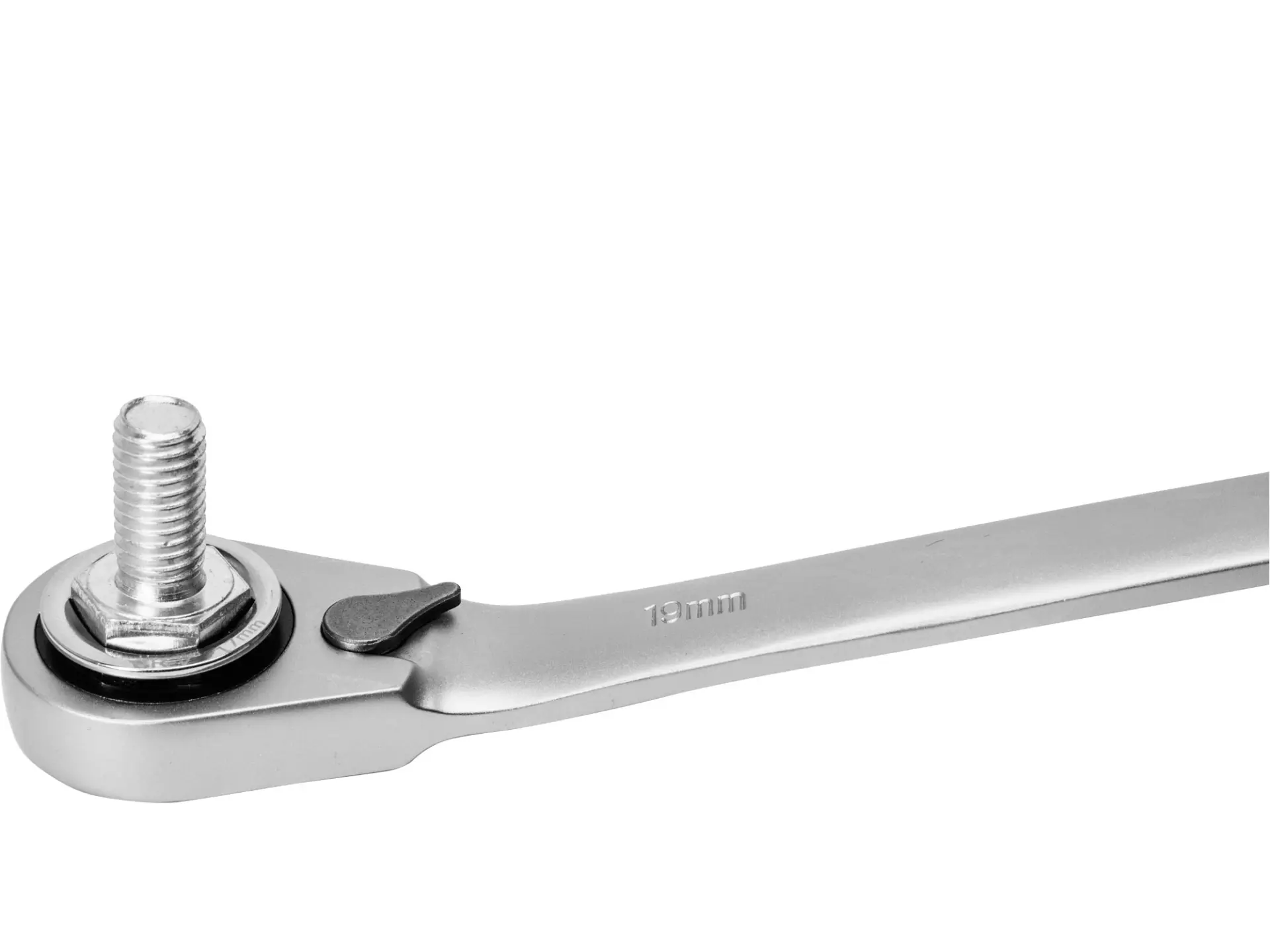 • tato sada nabízí ekonomické řešení, kde jeden oboustranný, ráčnový klíč s přepínáním L/P chodu velikosti 14-19mm a série deseti ráčnových vložek dokáže nahradit celou sadu ráčnových klíčů o dvanácti velikostech