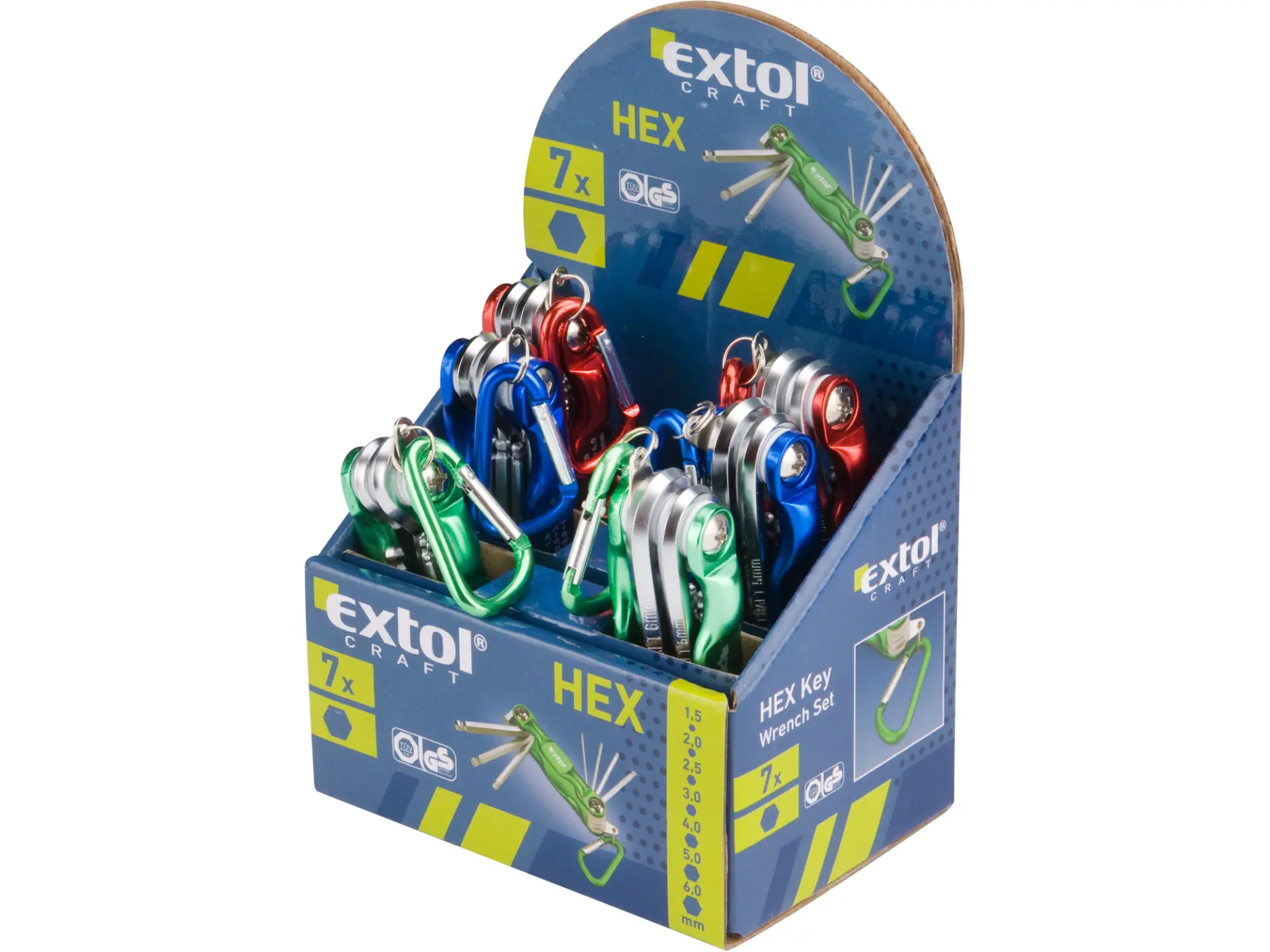 1,5-2-2,5-3-4-5-6mm, s kuličkou, mix barev: zelená, modrá, červená, skládací rukojeť s karabinou