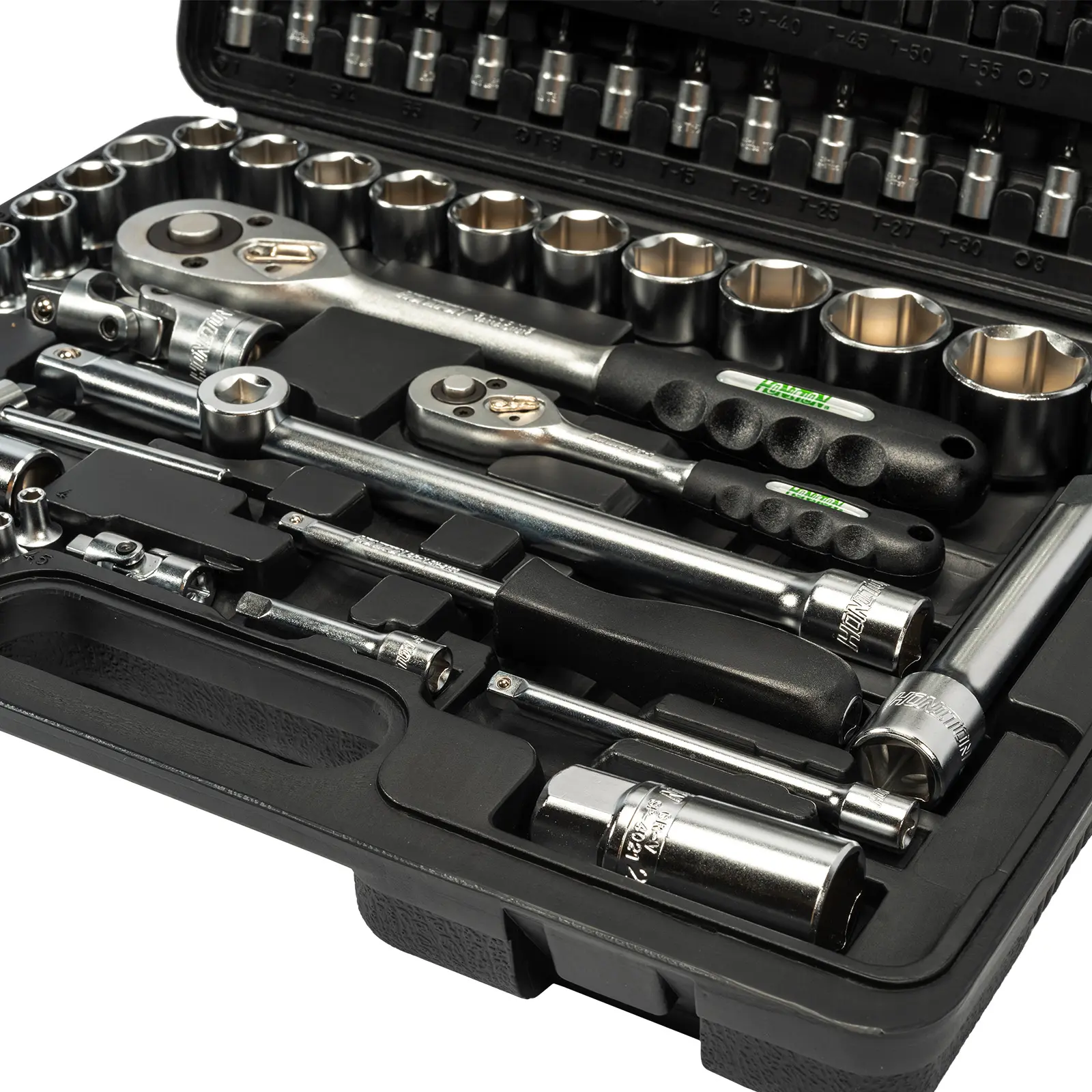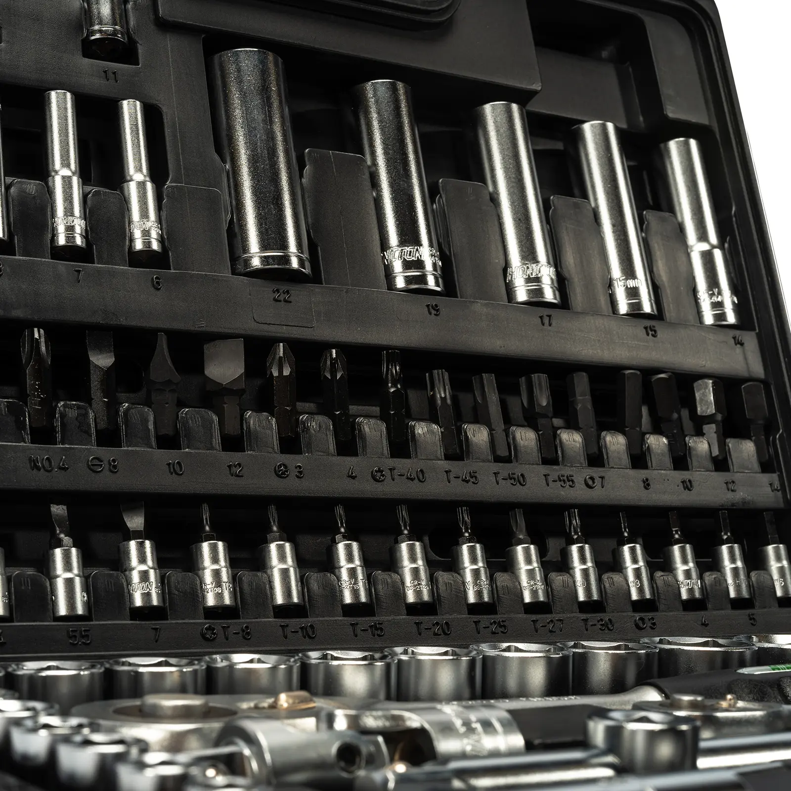 Její kompletní složení hlavic 1/4" a 1/2", bitů a nástavců z ní dělá nenahraditelného pomocníka. Všechny části jsou vyrobeny z houževnané CrV oceli, která je certifikovaná strojírenským zkušebním ústavem. Výbava: Velmi dobře kombinovaná sada v přehledném kufru. Zástrčné šroubovací hlavice PH, PL, Imbus a TRX. Klíče na svíčky 16 a 21 mm. Technologie: Ráčny s přepínací páčkou a uvolňovacím tlačítkem. Materiál: Nejpoužívanější rozměry 1/4" a 1/2" hlavic z kvalitní chrom-vanadiové oceli.