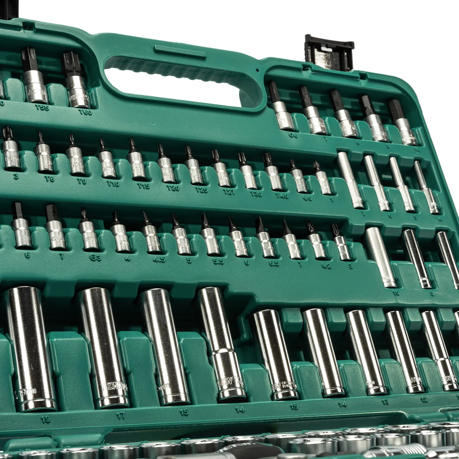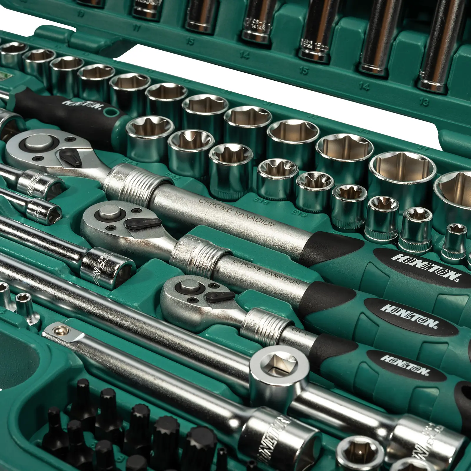 Ucelená sada 1/4”, 3/8” a 1/2” hlavic zaměřená na profesionály. Bohaté příslušenství jako bity, Imbus a TRX hlavice, prodloužení, klíče na svíčky a teleskopické ráčny ocení především autoservisy a dílny.