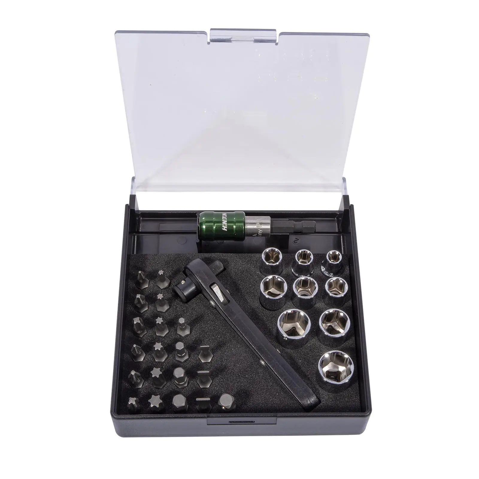 PL4.5, PL5.5, PL6.5; PH1, PH2, PH3; PZ1, PZ2, PZ3; IMBUS: 3, 4, 5, 6 mm; TRX: T10, T15, T20, T25, T30, T40