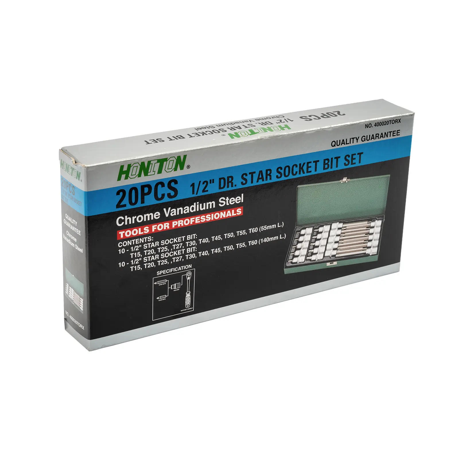 55 mm TRX: T15, T20, T25, T27, T30, T40, T45, T50, T55, T60; 140 mm TRX: T15, T20, T25, T27, T30, T40, T45, T50, T55, T60