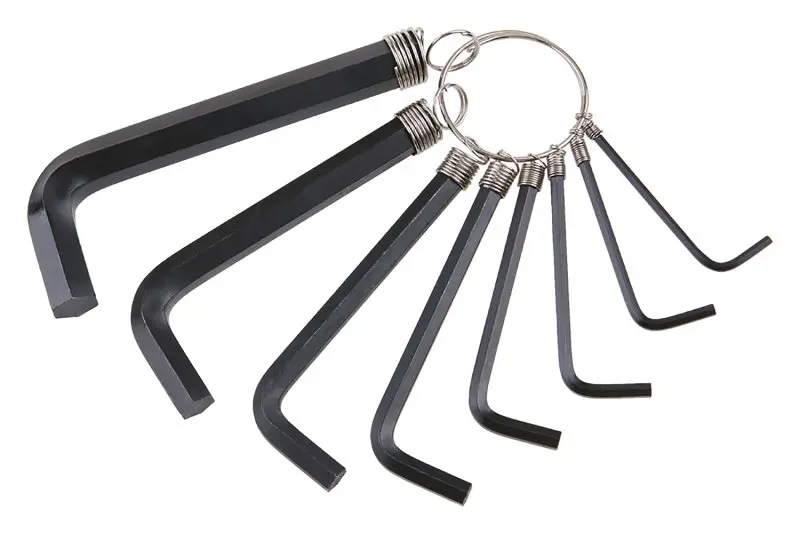 • sada nejpoužívanějších rozměrů L šestihranných klíčů (inbusů)