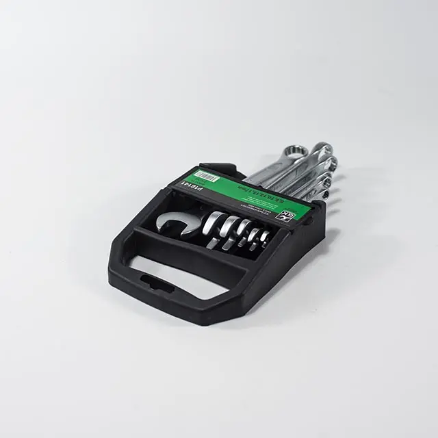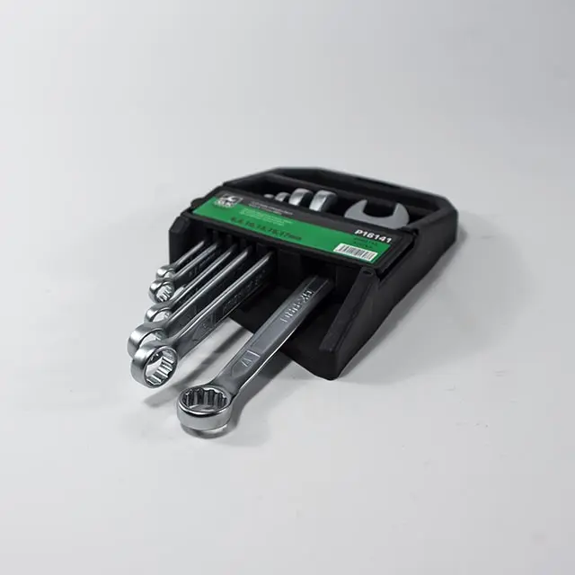 Sada očkoplochých klíčů je uložena v plastovém držáku. Klíče jsou z jedné strany ploché otevřené, ze strany druhé je dvanáctihranné očko.