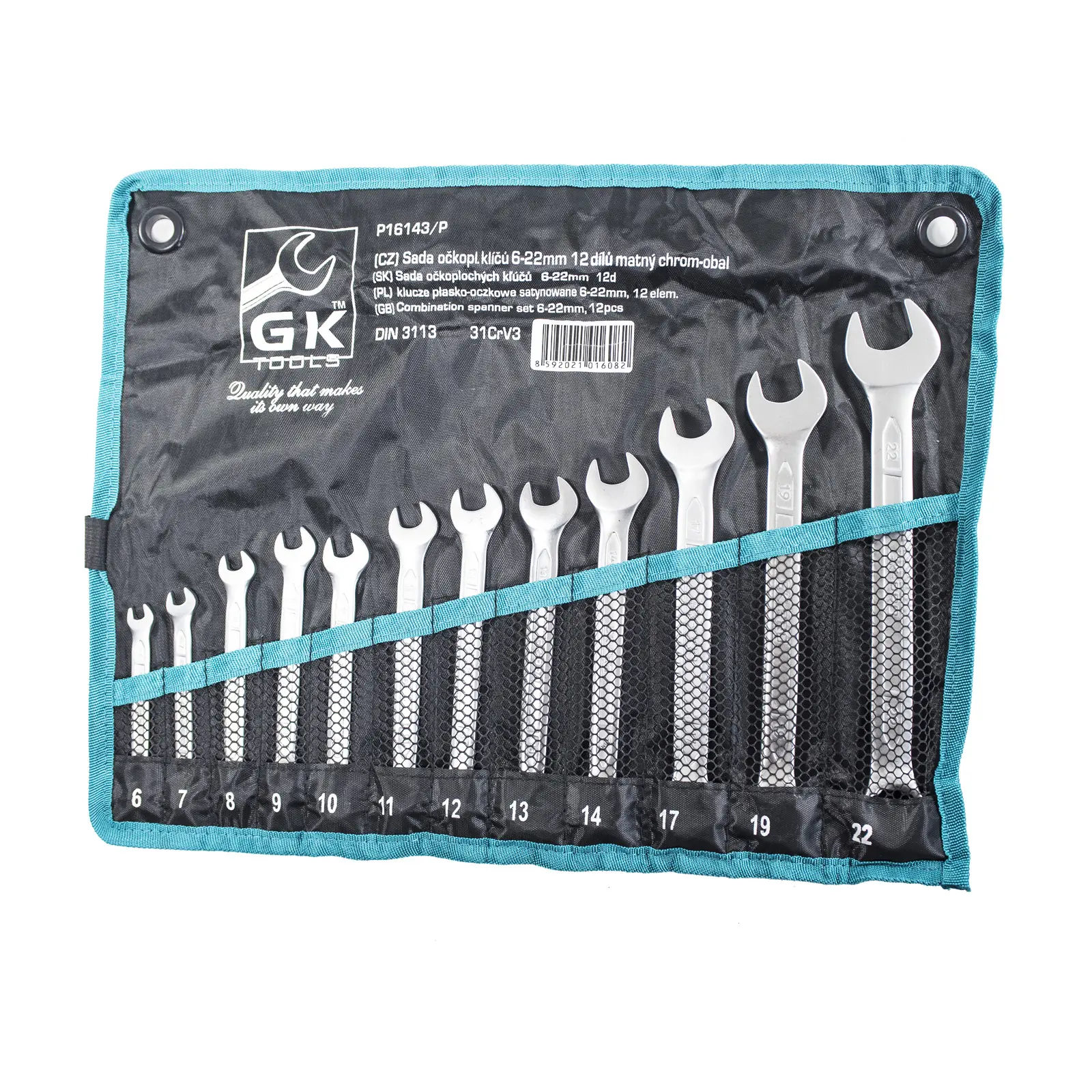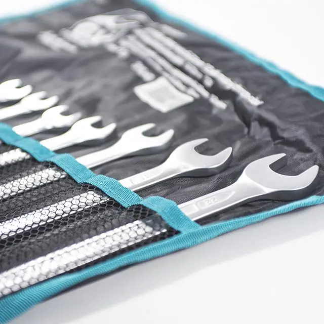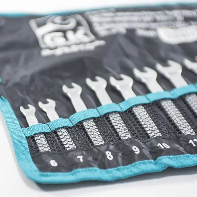 Sada očkoplochých klíčů je uložena v textilním obalu. Klíče jsou z jedné strany ploché otevřené, ze strany druhé je dvanáctihranné očko.Norma -DIN 3113 Materiál- 31CrV4