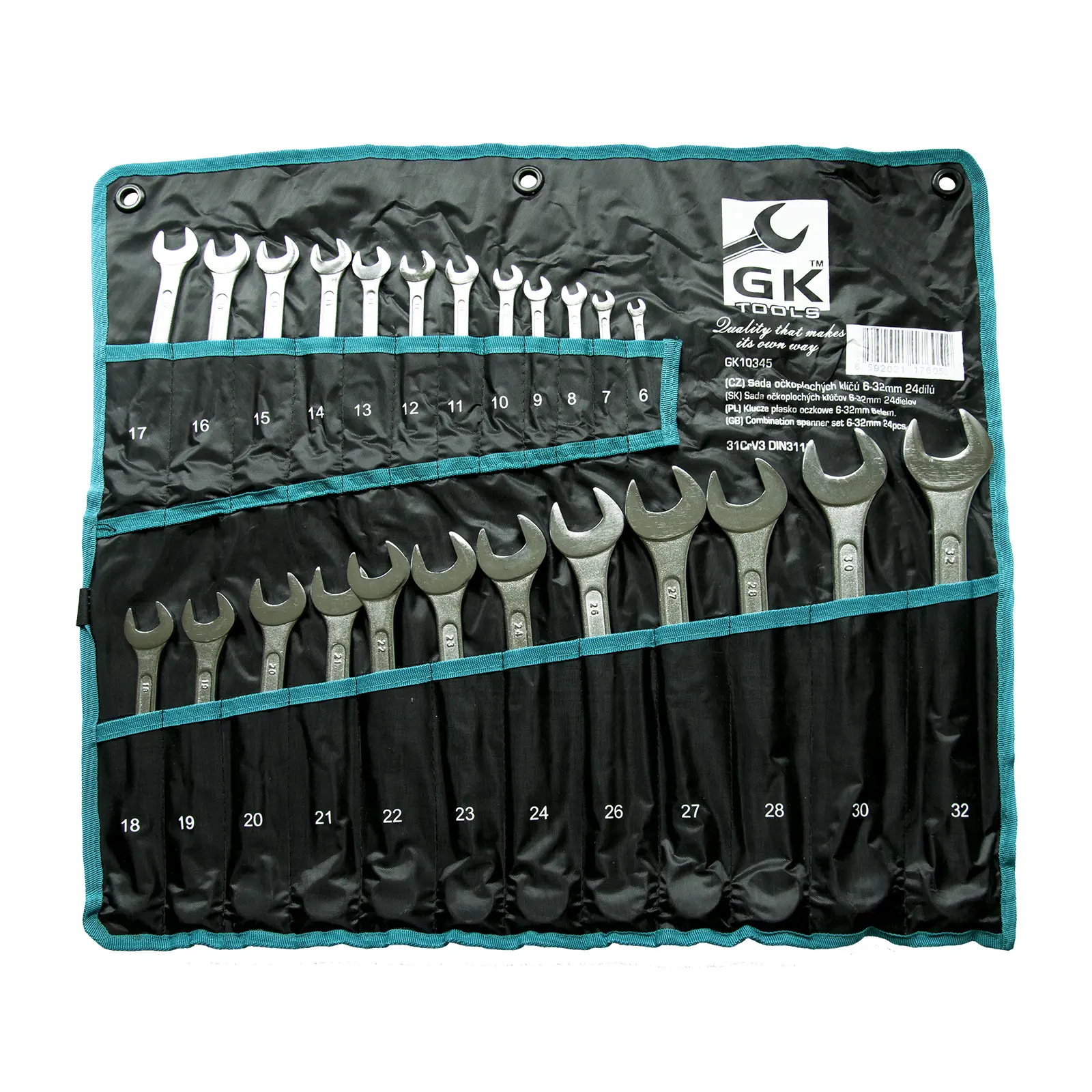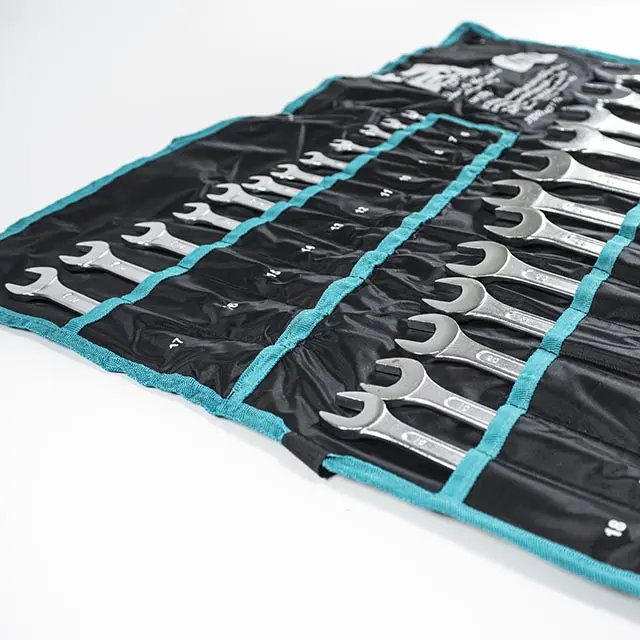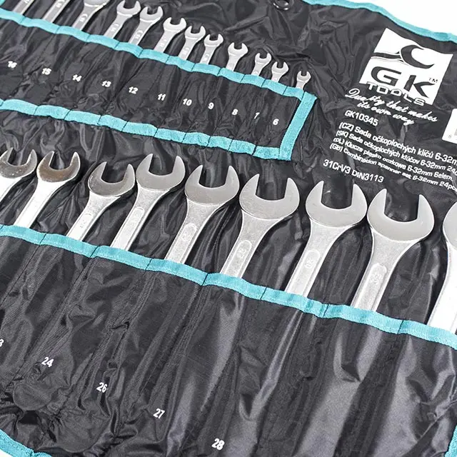 Sada očkoplochých klíčů je uložena v obalu.Klíče jsou z jedné strany ploché otevřené, ze strany druhé je dvanáctihranné očko.