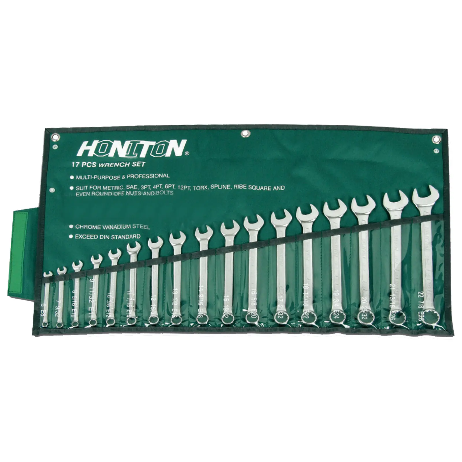 Očkoploché klíče, které jsou uloženy v textilním obalu.