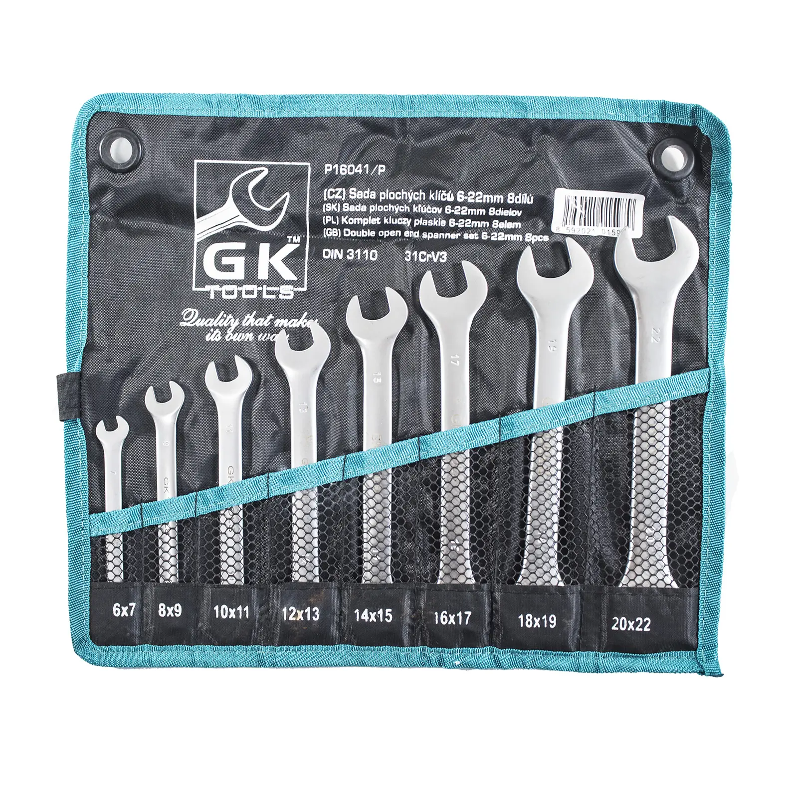 Sada plochých maticových klíčů v textilním obalu.Norma -DIN 3110 Materiál- 31CrV3
