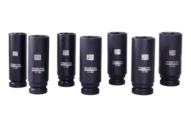 • sada prodloužených průmyslových nástrčných rázových/úderových šestihranných hlavic 1/2"