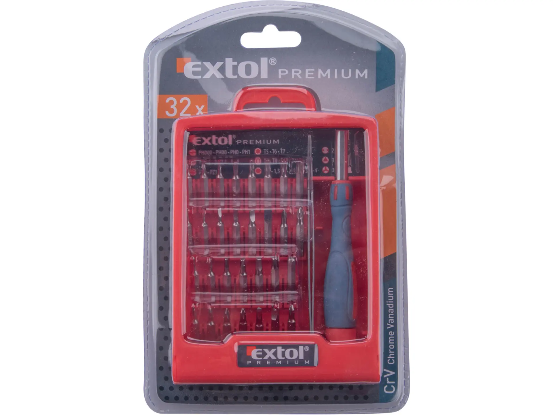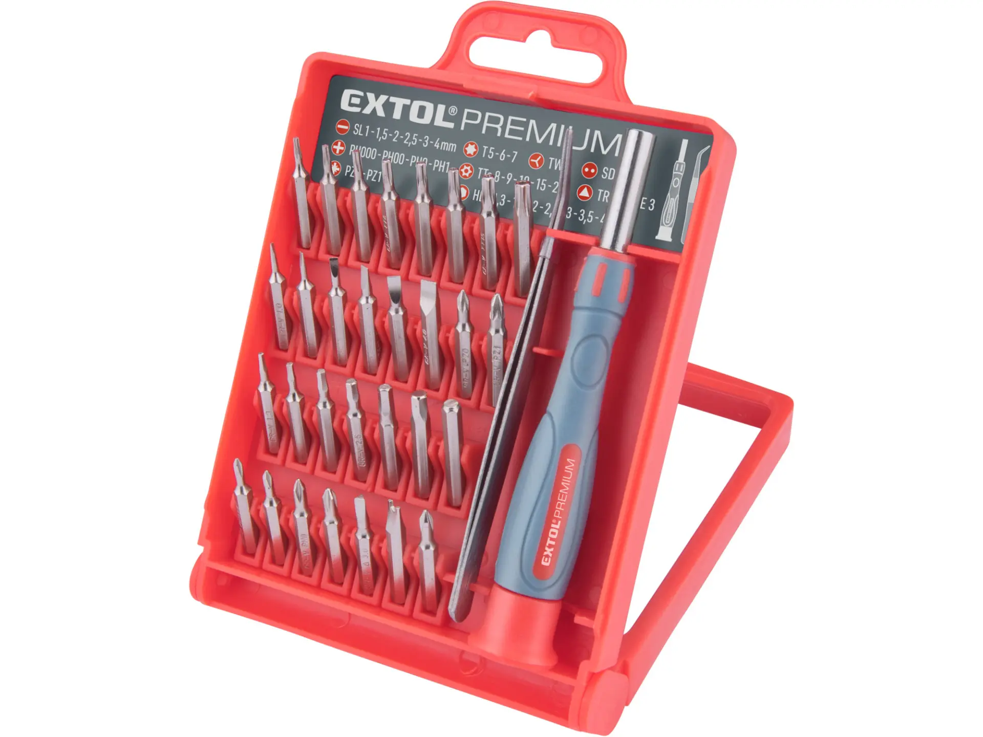 mini-hroty 5/32": (-) 1-1,5-2-2,5-3-4mm, PH 000-00-0-1, PZ 0-1, HEX 1,3-1,5-2-2,5-3-3,5-4mm, SD 2,6, TW 3, T 5-6-7, TTa 8-9-10-15-20, triangle 3, pinzeta , rukojeť-nástavec na hroty 115mm