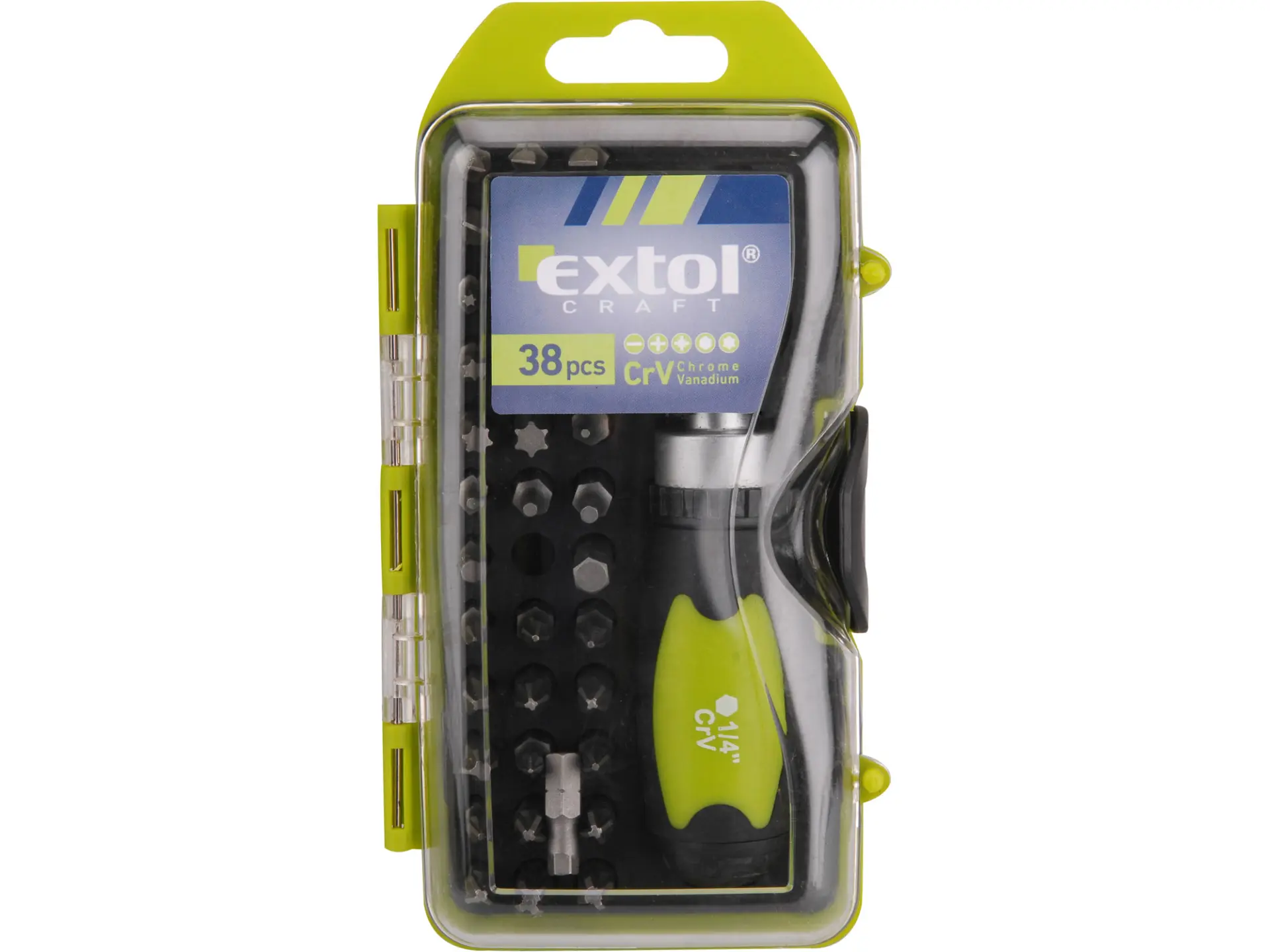 (-) 3-4-5-6-6-7mm, PH 0-1-1-2-2-2-3-3, PZ 0-1-1-2-2-2-3-3, HEX 1,5-2-2,5-3-4-5-6mm, T 8-10-15-20-25-27-30-40, ráčnový šroubovák zakončený 1/4" šestihranem