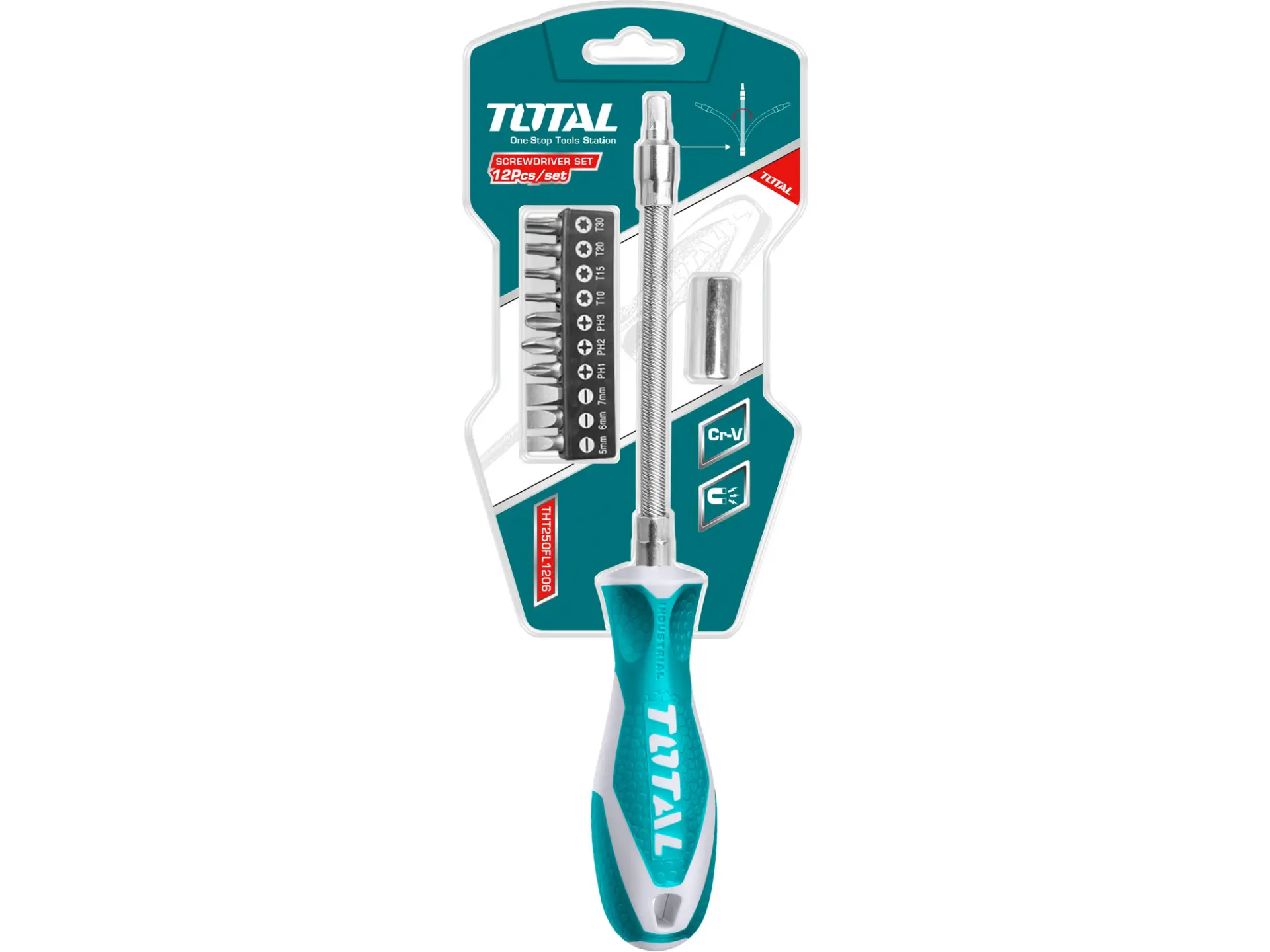 12 ks Sada šroubováků s ohebnou hřídelíZahrnout:1ks Pružná rukojeť hřídele1ks adaptér bitů 4-6mm (25mm).10 ks bitů šroubováků 6,35 x 25 mm:SL5,SL6,SL7,PH1,PH2,PH3,T10,T15,T20,T25