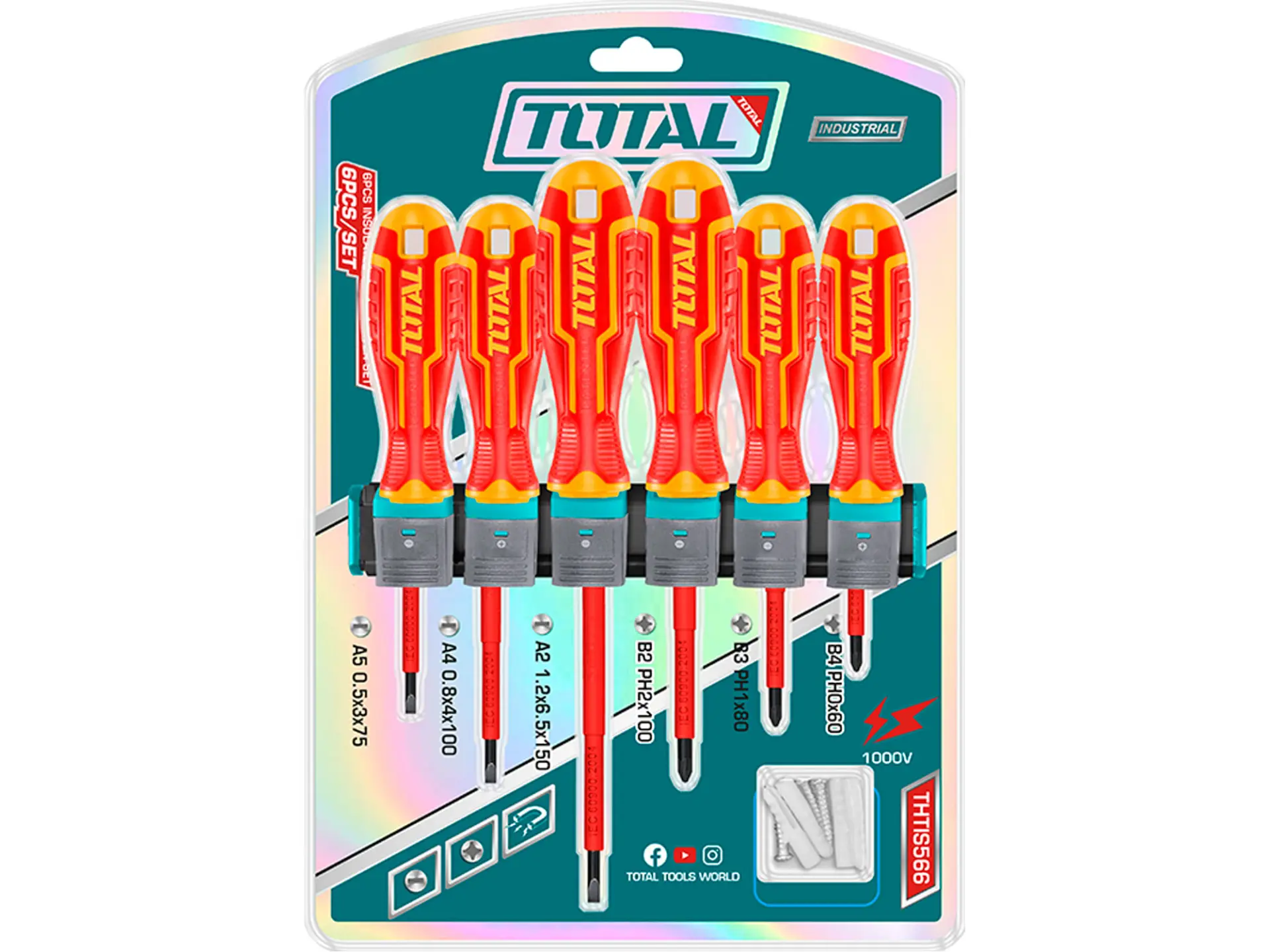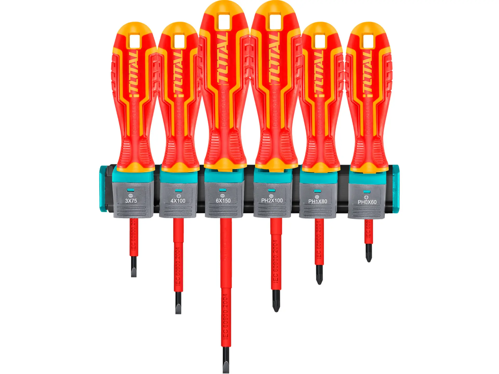 Sada elektrikářských šroubováků 1000V kvalitní chrom vanadová ocel Sada obsahuje: SL3×75, SL4×100, SL6.5×150, PH0×60, PH1×80, PH2×100 certifikace VDE