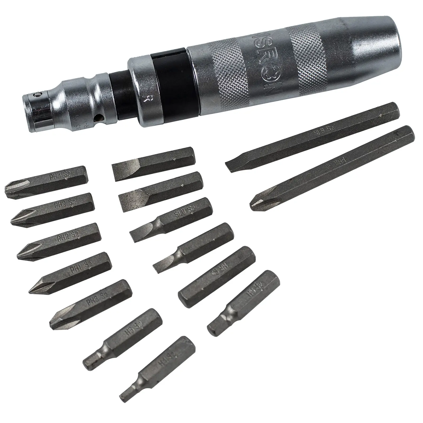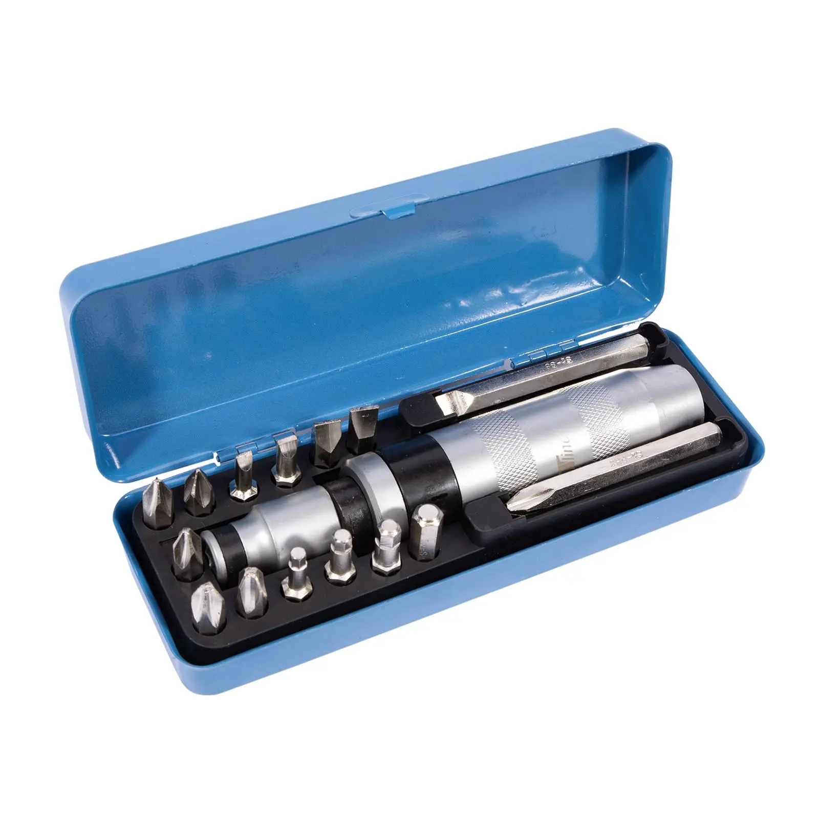 Tělo z CrV oceli kalené a odolné pro dlouhou životnost. Vroubkovaná rukojeť pro snadné povolení nebo utažení poškozených nebo rezavých matic, šroubů nebo vrutů. Bity s S2 úpravou s výbornou odolností.
