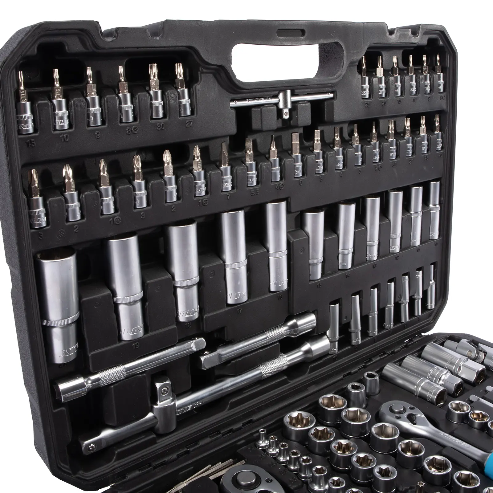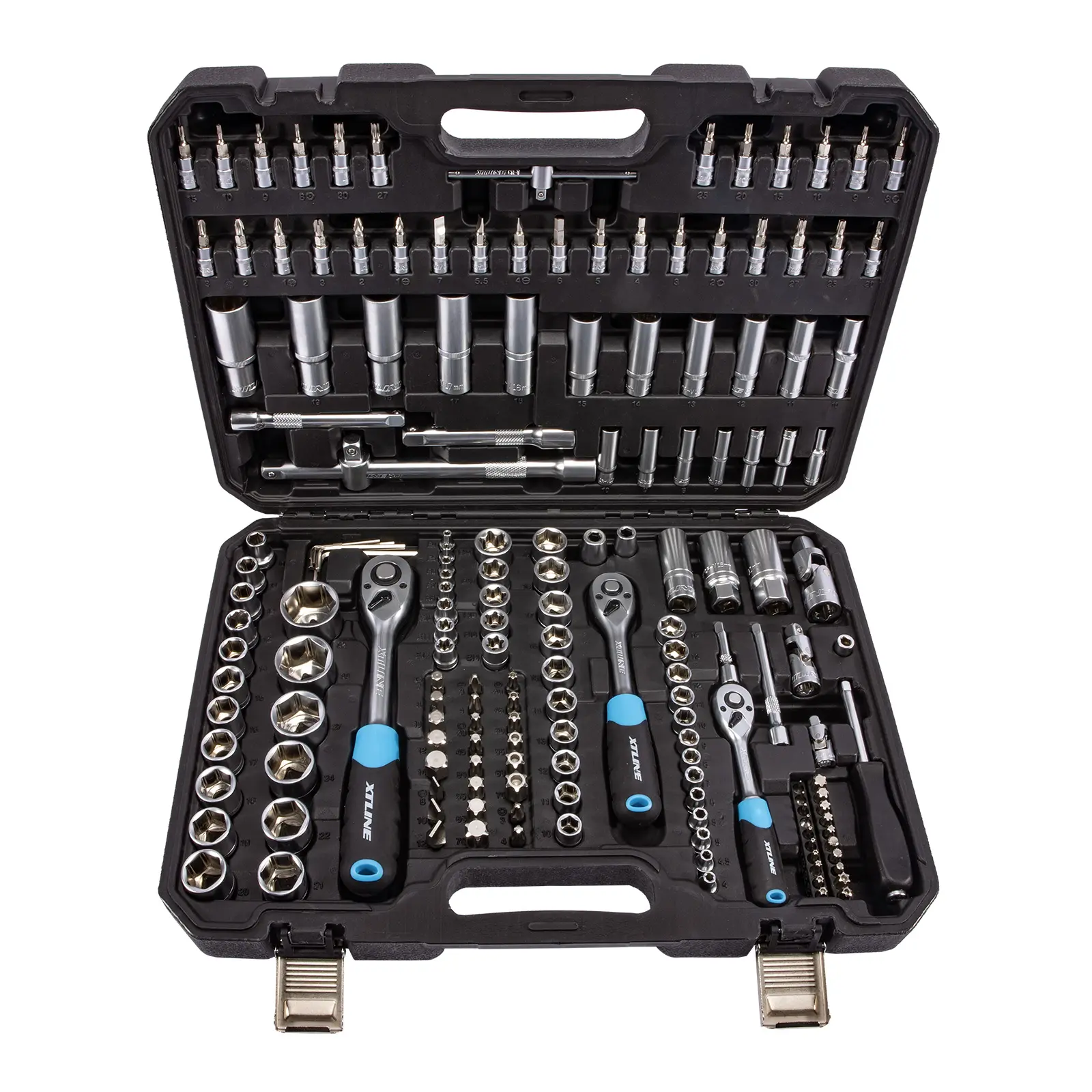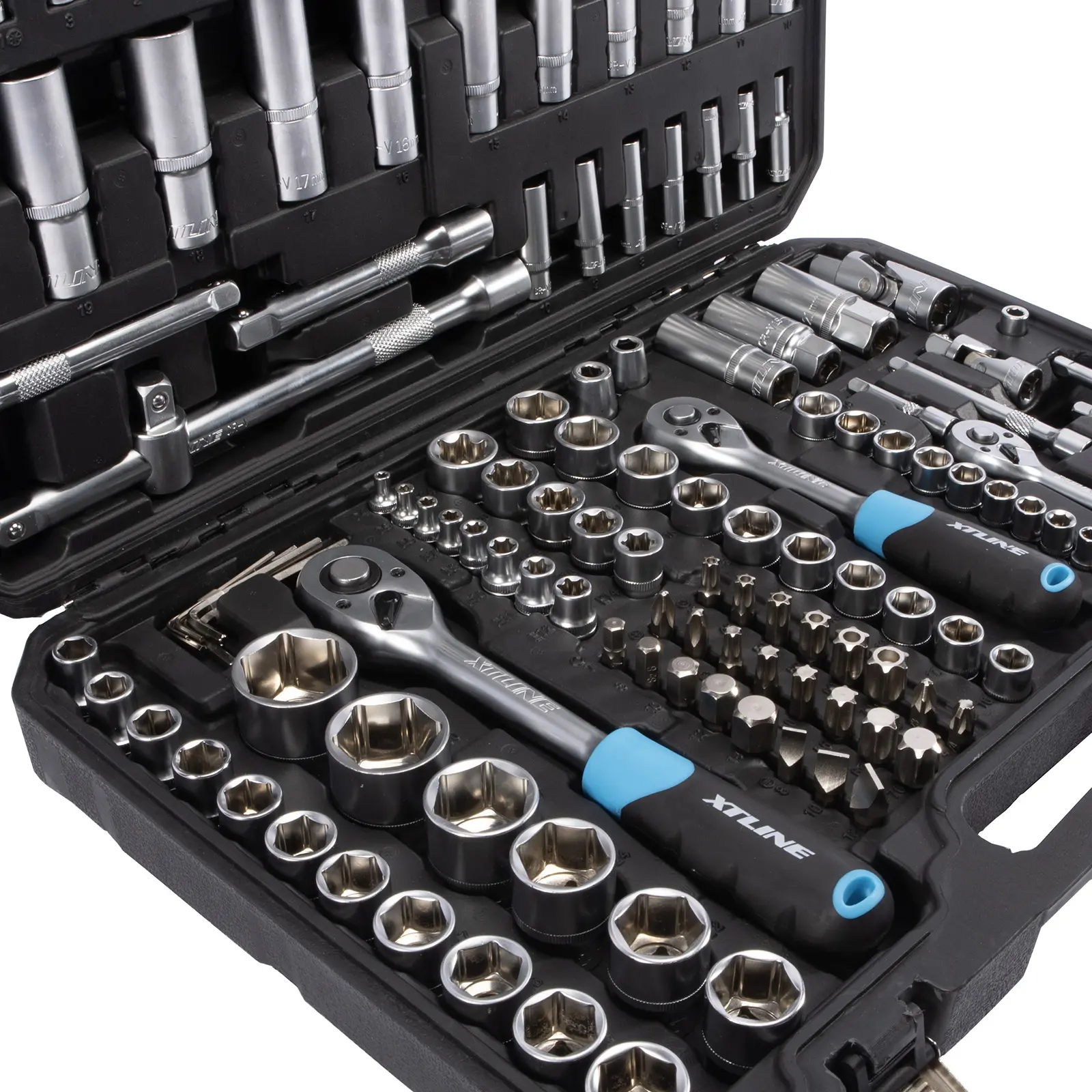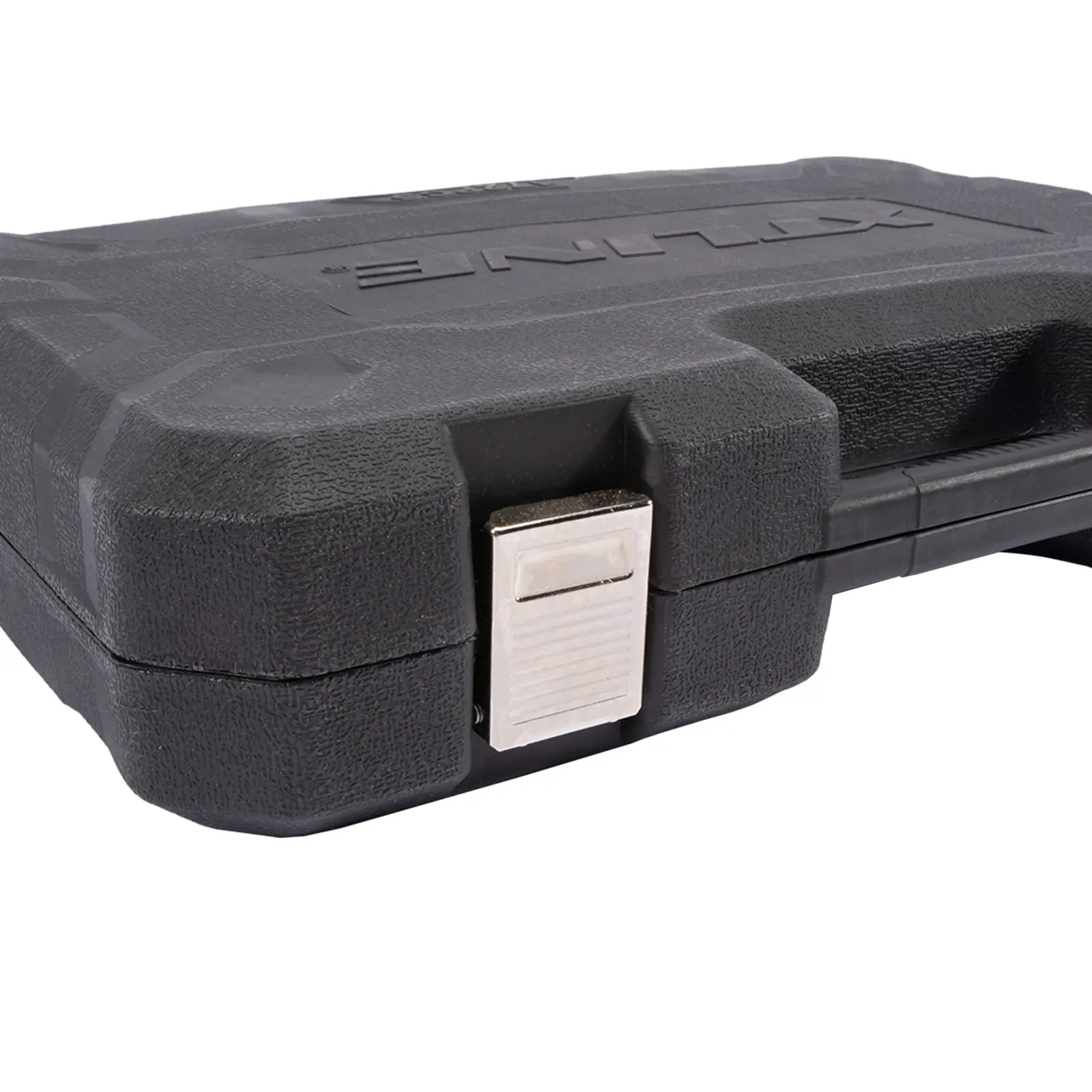 Sada hlavic o velikostech 1/4"-3/8"-1/2" nabízí širokou škálu nástrojů, která je ideální pro široké spektrum úkolů. Vše uloženo v pevném plastovém kufru s kovovými přezkami pro lepší zabezpečení a snadné přenášení. Sada je ideální pro ty, kteří hledají komplexní řešení pro běžné opravy nebo montáže s důrazem na odolnost a praktičnost.