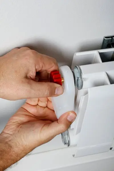 • dbejte zvýšené opatrnosti, hlídejte množství kapaliny v záchytné nádobce - je-li nádobka plná UTÁHNĚTE VENTIL a nádobku vylijte, pokud je nutné postup opakujte dokud z ventilu topného tělesa neuniká jen voda