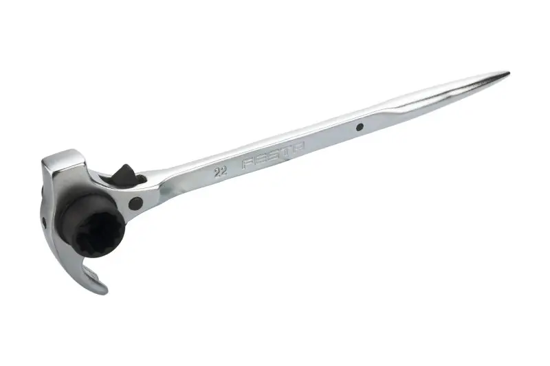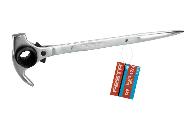 • lešenářský multifunkční klíč s ráčnou 19 a 22 mm, vhodný zejména na montáž a demontáž lešení