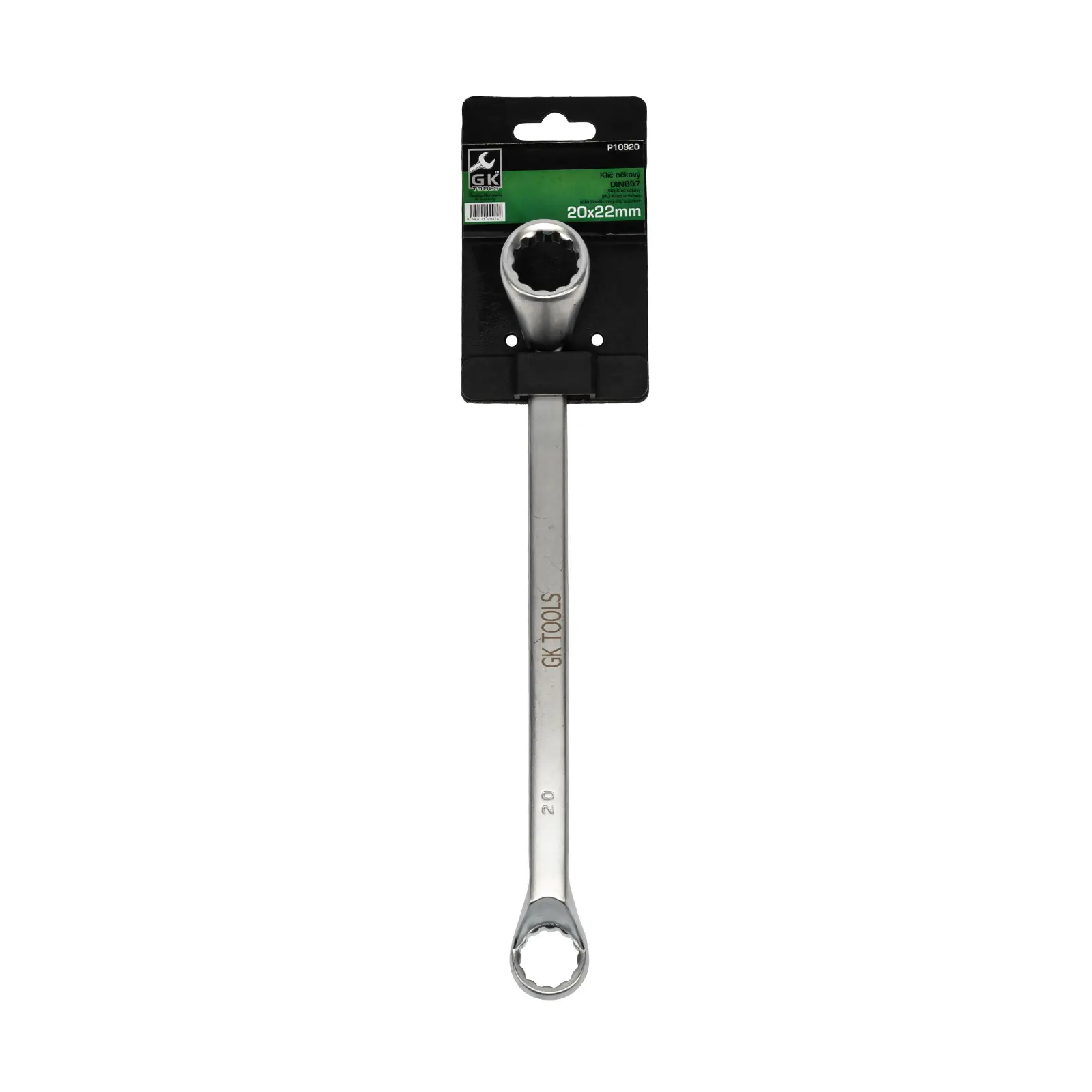 Vyhnutý očkový oboustranný klíč pro utahování zapuštěných šroubů a matic.