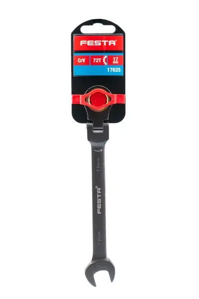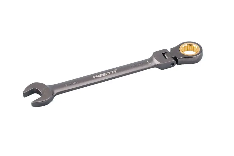 Ráčnové klíče FESTA s kloubem pro použití pod úhlem s výhodou rohatky (ráčny) jsou vyrobeny kováním z kvalitní chromvanadiové oceli. Tato ocel povrchově upravená matným tvrdochromem pro dosažení optimální povrchové tvrdosti a odolnosti vůči korozivním vlivům. Rohatku ráčny klíče tvoří 72 kalených zubů, záběr po 5-ti obloukových stupních. Kvalitou, tvrdostí a přesností přesně odpovídají normě DIN/ISO.