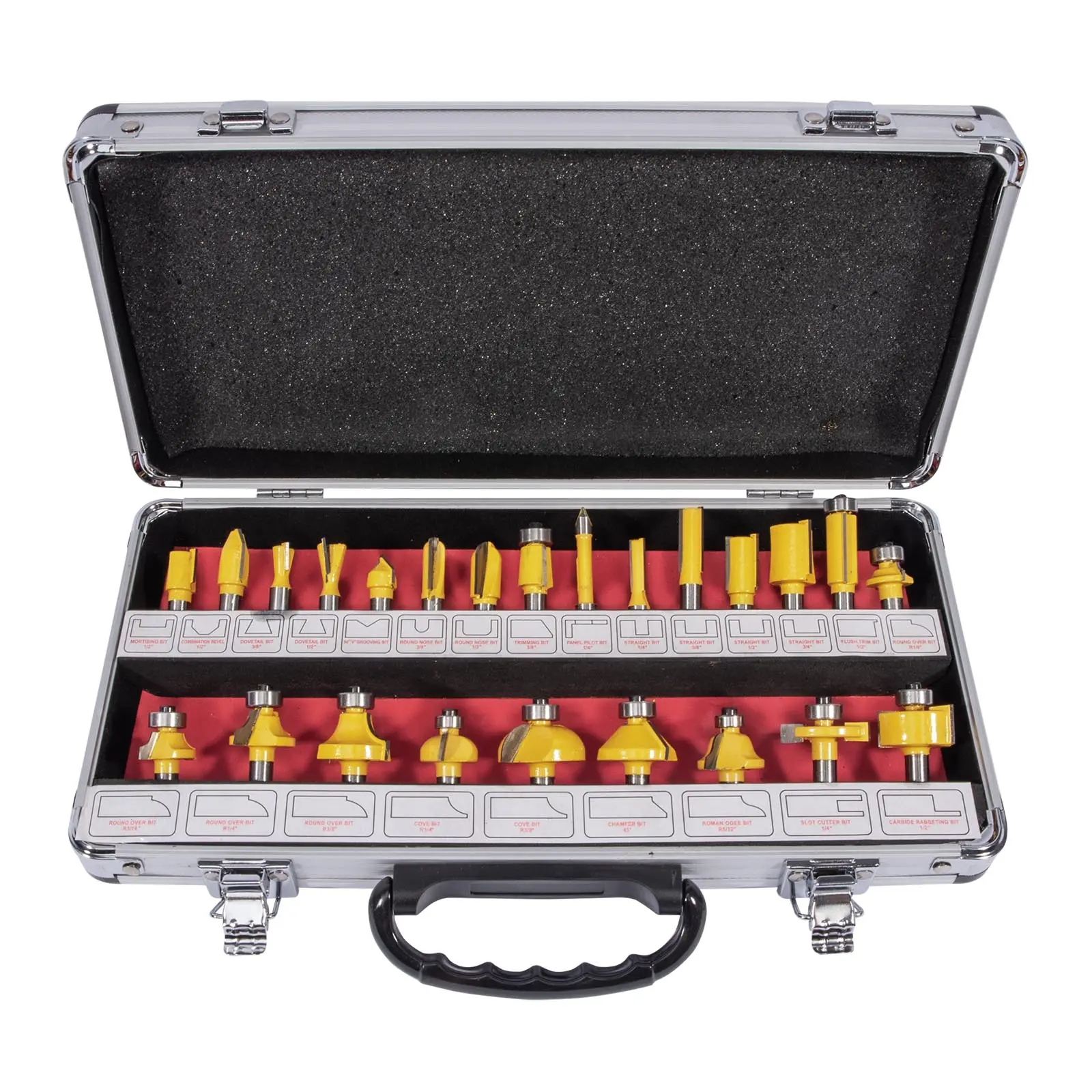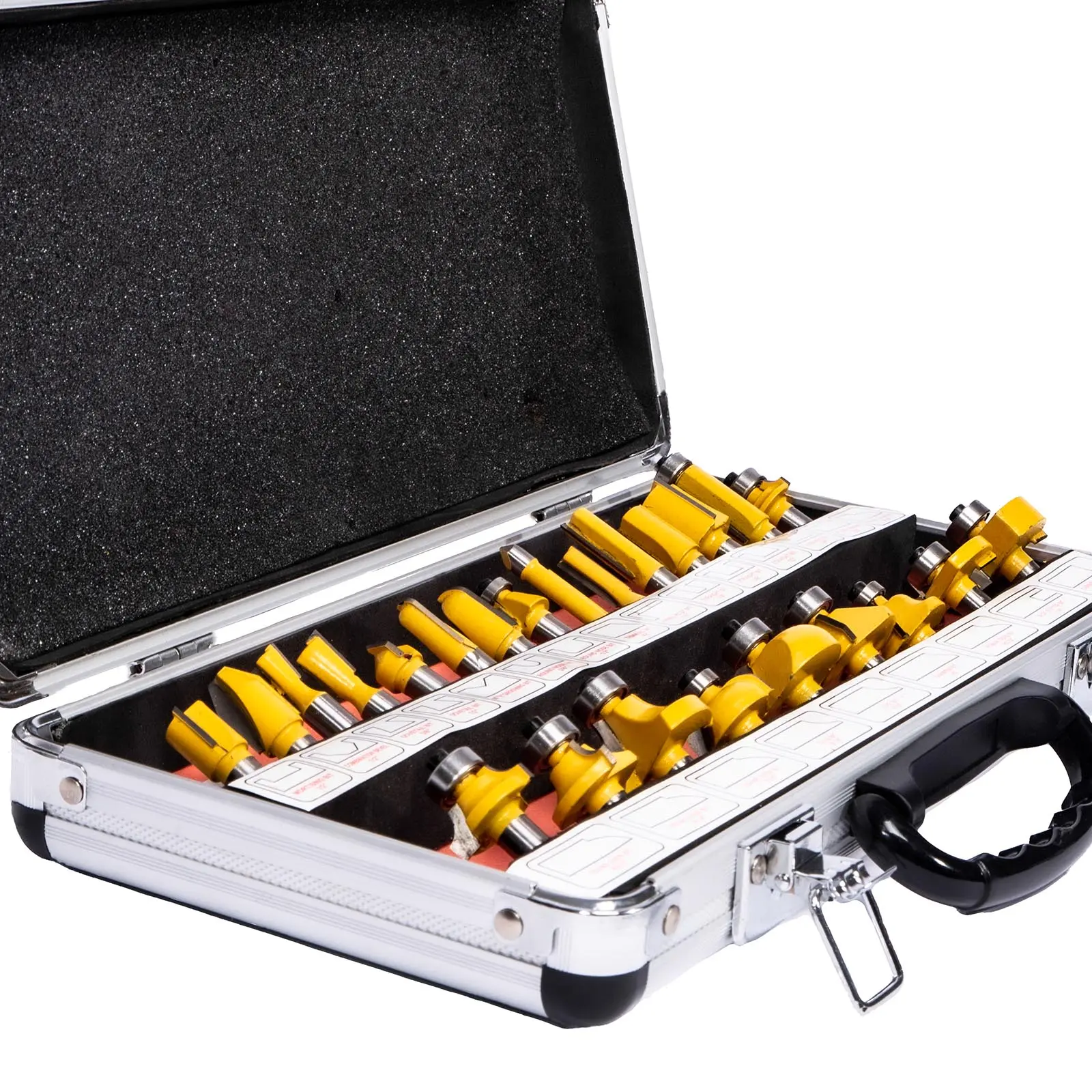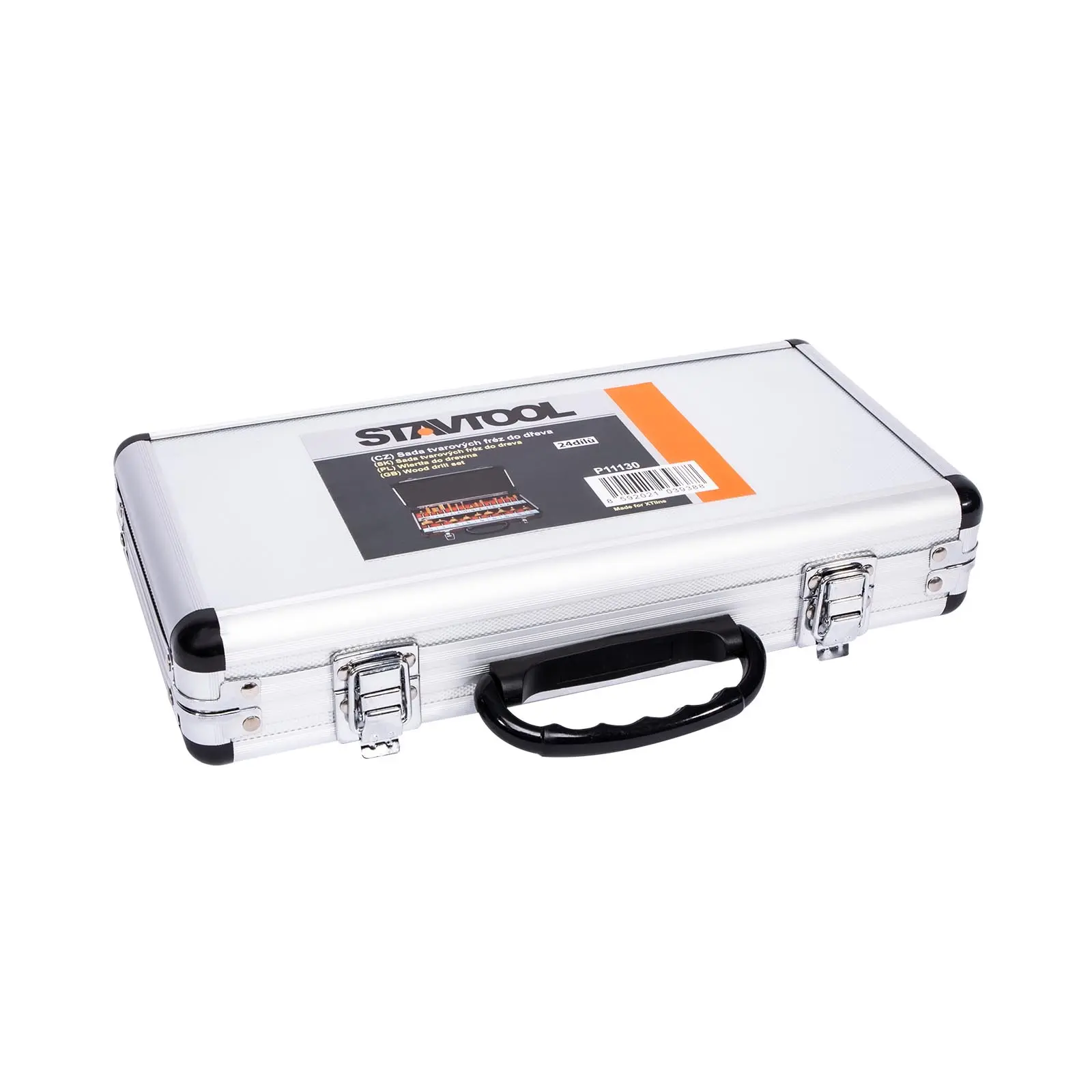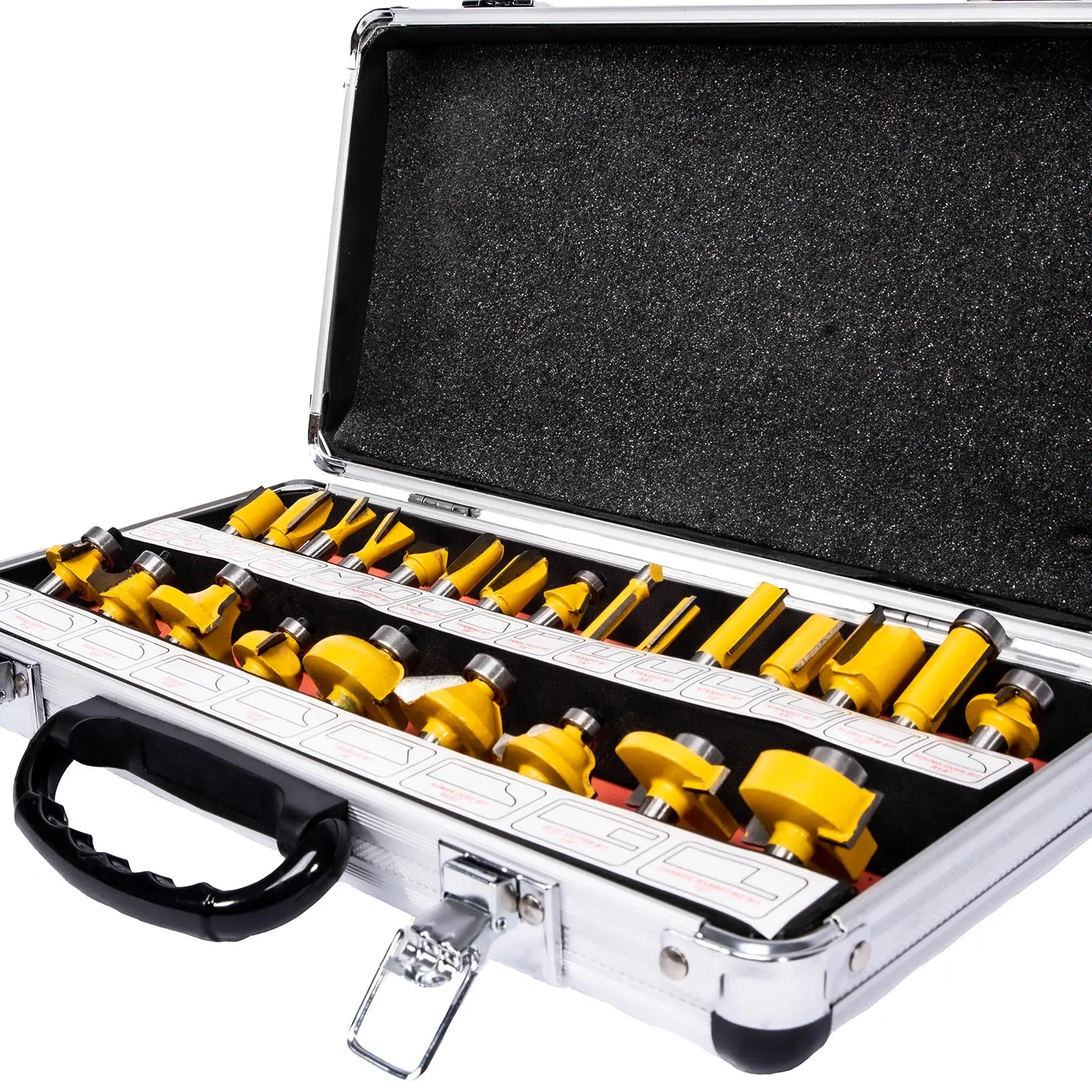 Tvrdokovové tvarové frézy pro horní frézky v hliníkovém kufříku s přehledným uložením.