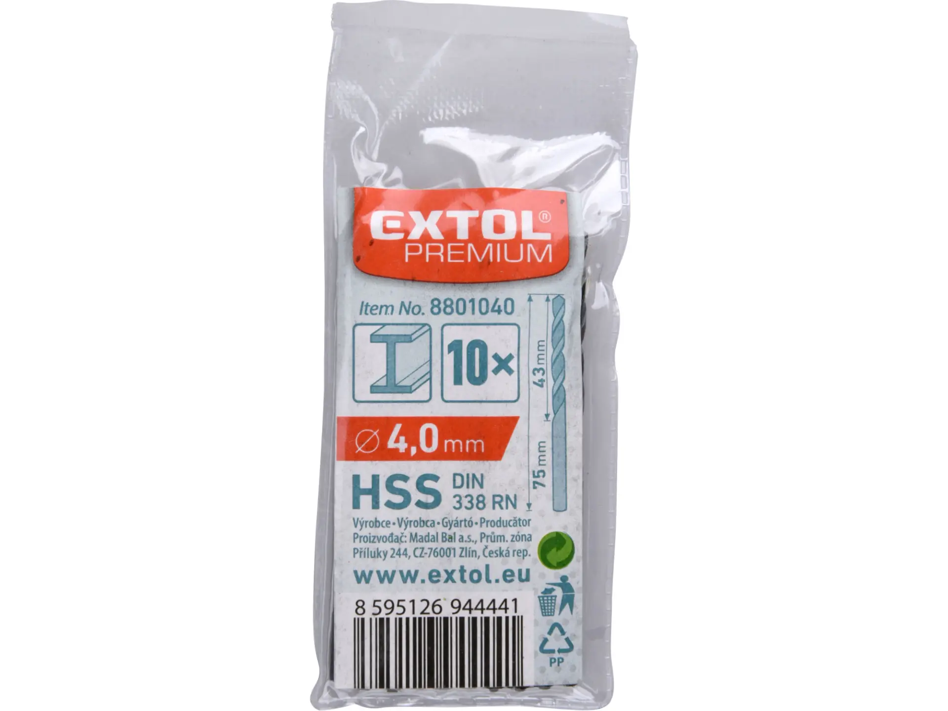 Vrtáky do kovu jsou vyrobené z rychlořezné oceli HSS a splňující normu DIN 338 se hodí pro vrtání děr do mosazi, uhlíkové oceli, litiny a ocelových slitin. Tento typ vrtáku je možné použít také pro vrtání do dřeva a plastů.