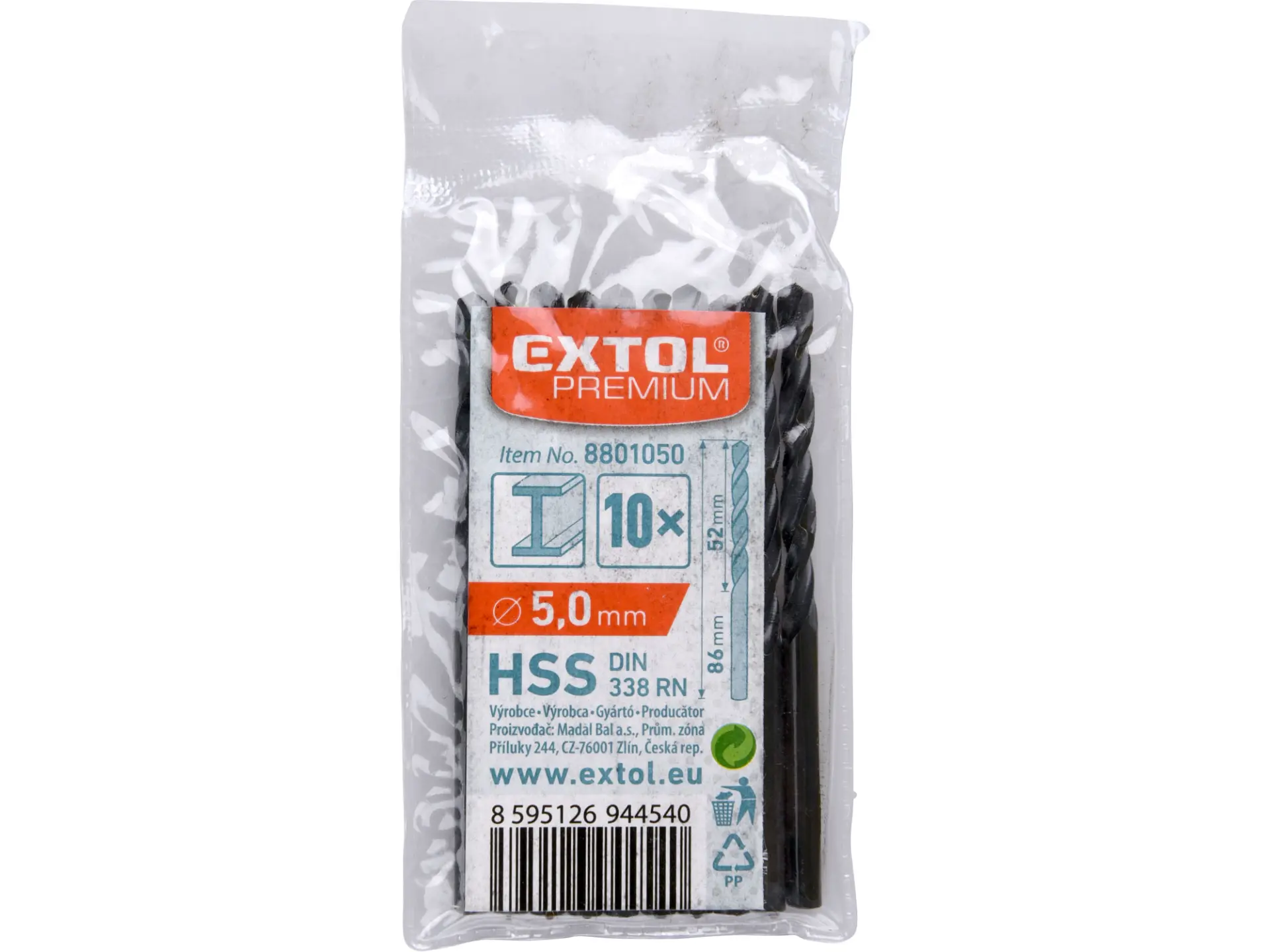 Vrtáky do kovu jsou vyrobené z rychlořezné oceli HSS a splňující normu DIN 338 se hodí pro vrtání děr do mosazi, uhlíkové oceli, litiny a ocelových slitin. Tento typ vrtáku je možné použít také pro vrtání do dřeva a plastů.