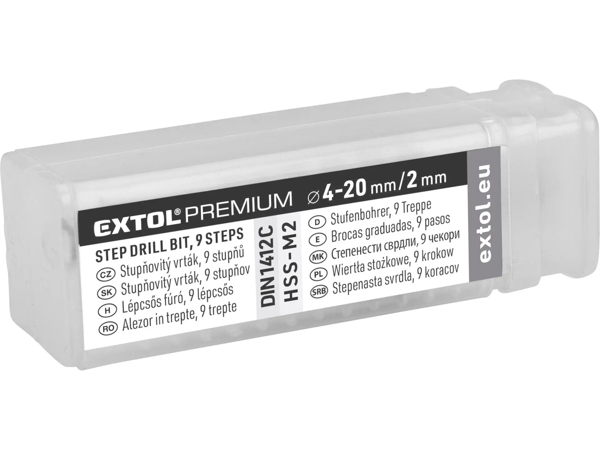 Stupňovité vrtáky se používají pro vrtání kruhových otvorů v slitinových i neslitinových ocelových plátech, trubkách a profilech do tloušťky stěny 4mm, k navrtávání a odhrotování v jedné pracovní operaci. Lze je použít také pro vrtání do měkčích materiálů, např. dřeva, plastů a plexiskla. Kuželový vrták je určen pro plynulé a bezhrotové vrtání a navrtávání otvorů bez deformace plechu. Vrtáky je možné znovu naostřit.