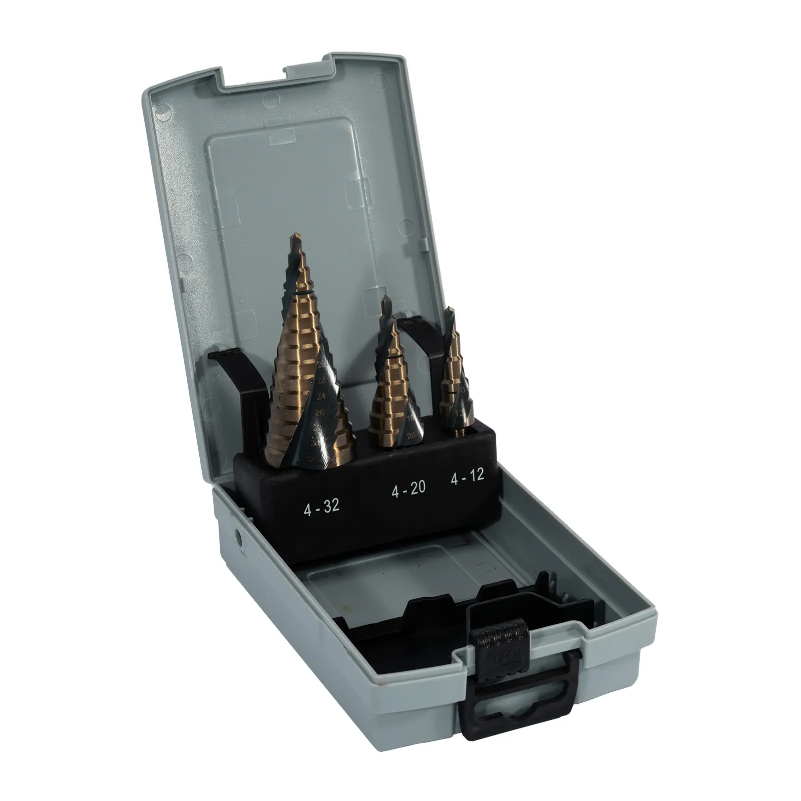 Stupňovitý vrták slouží pro vrtání kruhových otvorů v ocelových plátech a plechu (i měkčích materiálů jako je dřevo, plast apod.). Plynulé a bezhrotové vrtání bez deformace materiálu. Díky povrchové úpravě TiN a TiAIN je nástroj odolnější proti opotřebení čela i hřbetu. Povlak vrtáku snižuje energetickou náročnost obrábění a zvyšuje jeho spolehlivost.