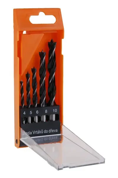 Sada nejpoužívanějších vrtáků 4, 5, 6, 8, 10 mm do dřeva, použití : pro běžné dílenské a kutilské použití, vrtání do dřeva, drřevotřísky, OSB panelů..., balení - folie.