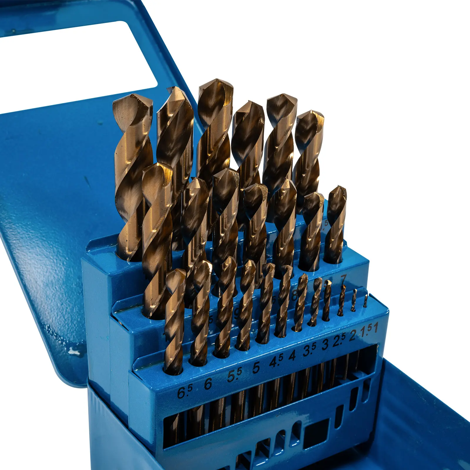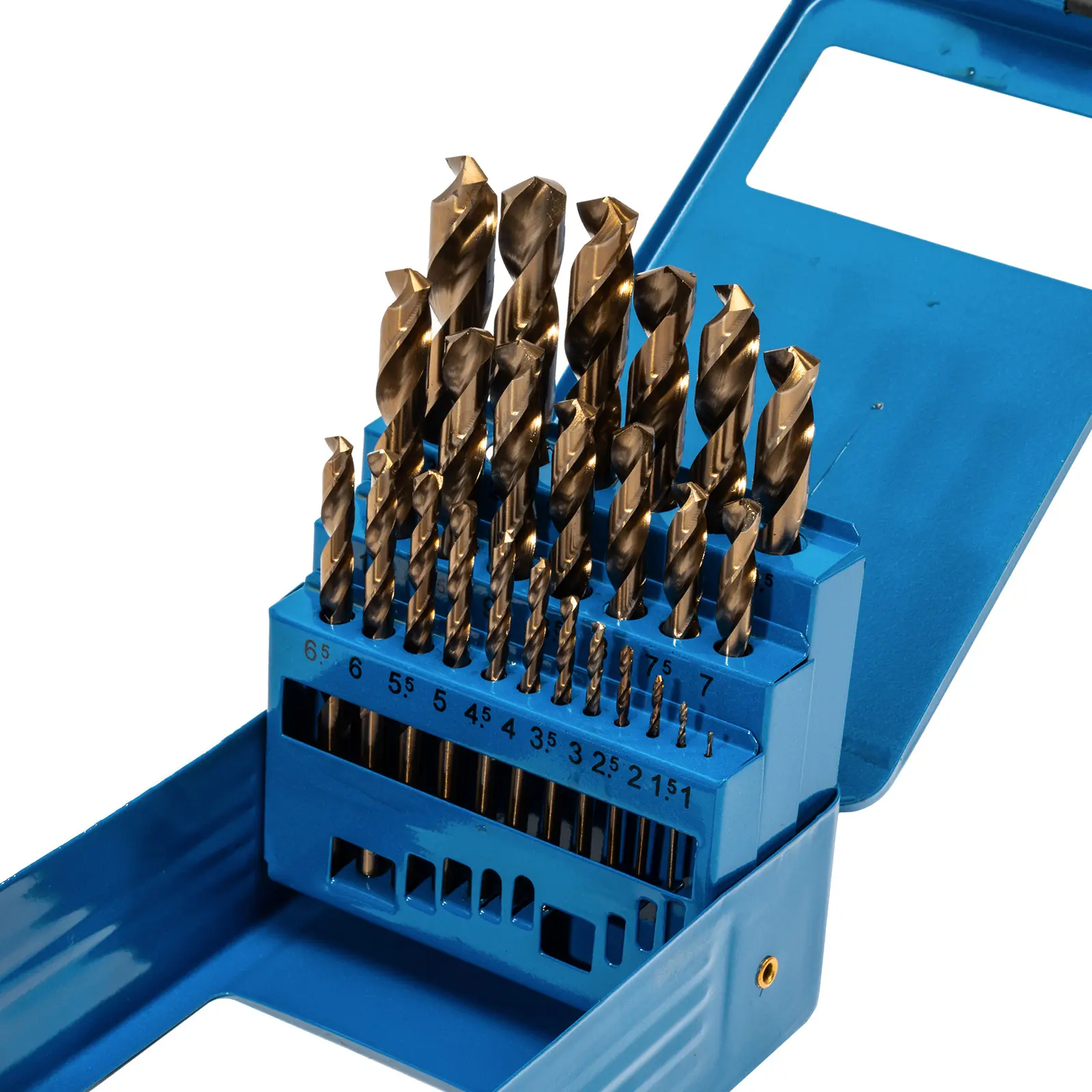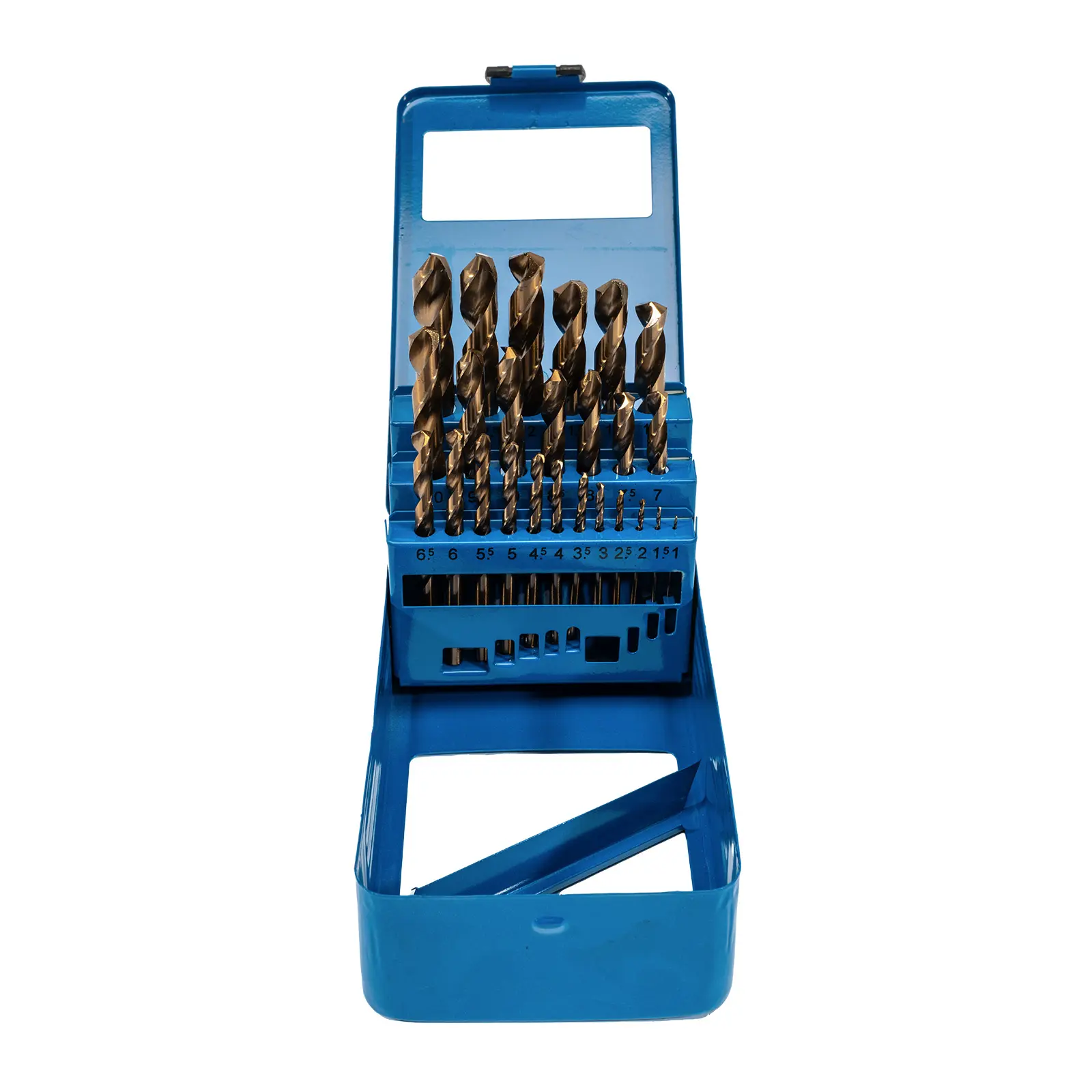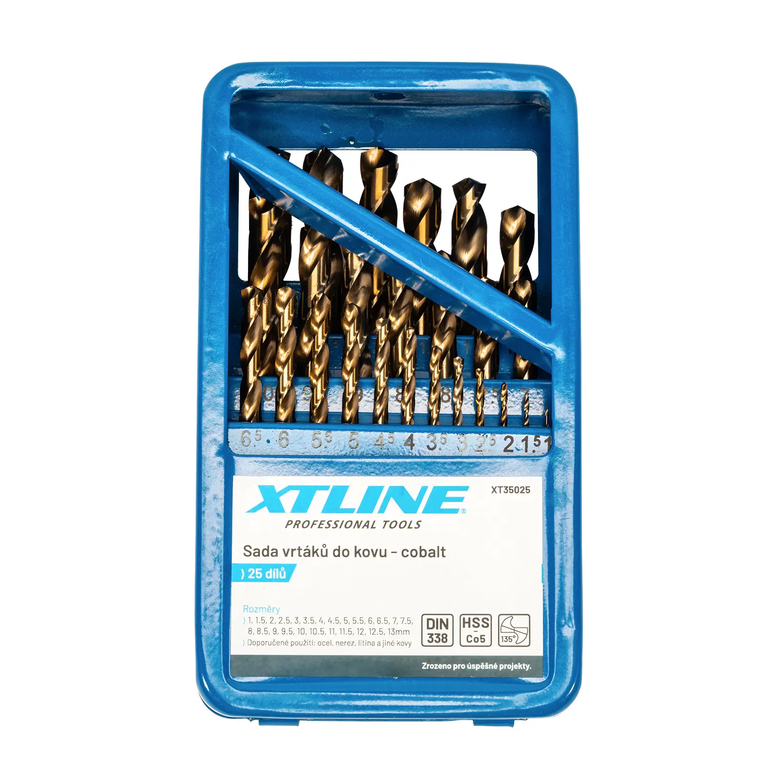 Sada 15 vrtáků XTLINE do kovu vyrobené z rychlořezné oceli HSS s příměsí 5% kobaltu, který zvyšuje tvrdost vrtáku a prodlužuje jeho životnost. Dělená špička broušená pod úhlem 135° vyžaduje menší tlak při vrtání a zabraňuje pohybu vrtáku po povrchu. Vhodné pro vrtání oceli, nerezové oceli, litiny a jiných kovů. Upnutí vrtáku na válcovou stopku a lze opětovně brousit. Sada vrtáků je uložena kovovém boxu. Disponuje špičkou vrtáku SPLIT-POINT 135° pro dokonalé vystředění. Vybroušená šroubovice rychle odebírá vrtaný materiál.