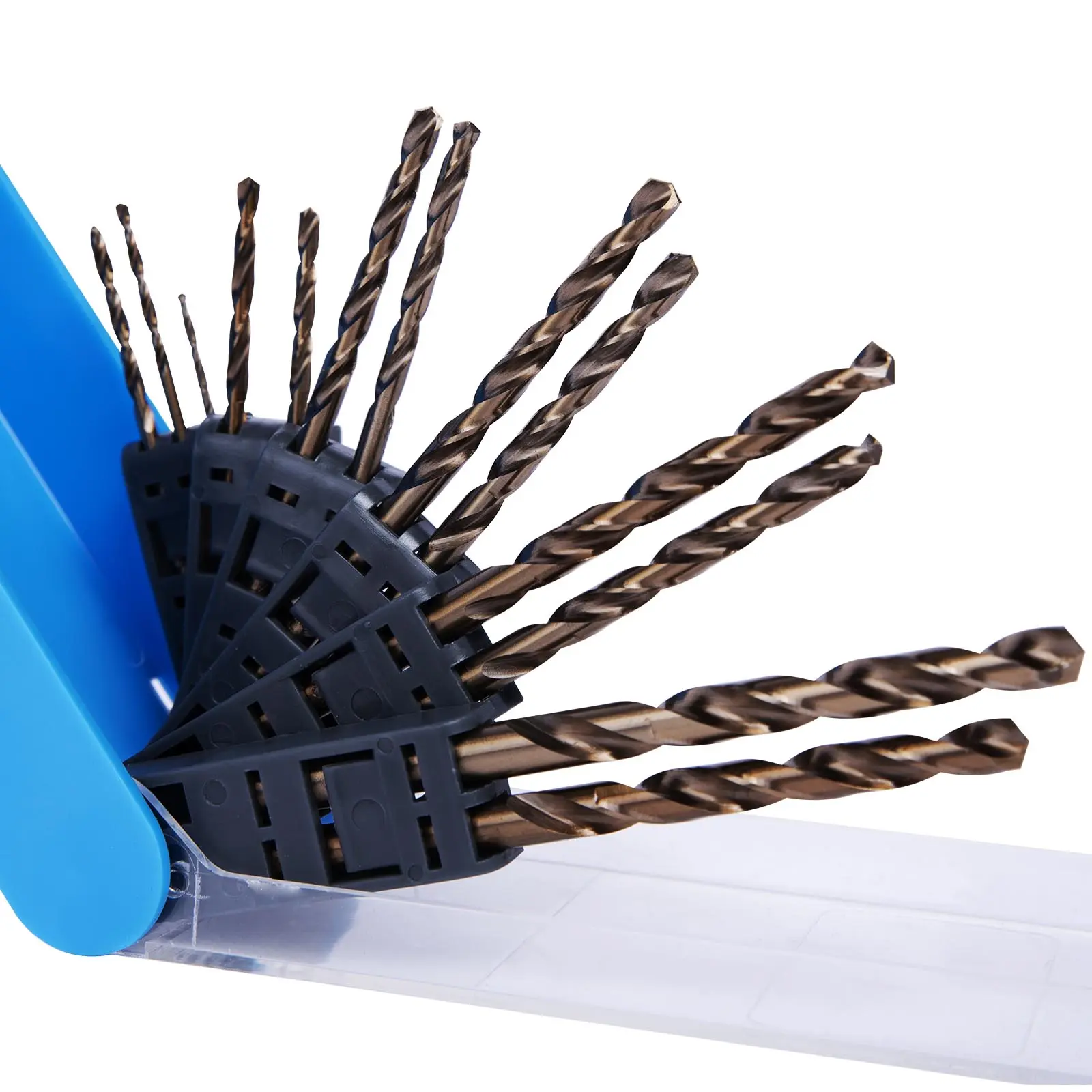 Sada 13 vrtáků XTLINE do kovu vyrobené z rychlořezné oceli HSS s příměsí 5% kobaltu, který zvyšuje tvrdost vrtáku a prodlužuje jeho životnost. Dělená špička broušená pod úhlem 135° vyžaduje menší tlak při vrtání a zabraňuje pohybu vrtáku po povrchu. Vhodné pro vrtání oceli, nerezové oceli, litiny a jiných kovů. Upnutí vrtáku na válcovou stopku a lze opětovně brousit. Sada vrtáků je uložena v plastové kazetě. Disponuje špičkou vrtáku SPLIT-POINT 135° pro dokonalé vystředění. Vybroušená šroubovice rychle odebírá vrtaný materiál.