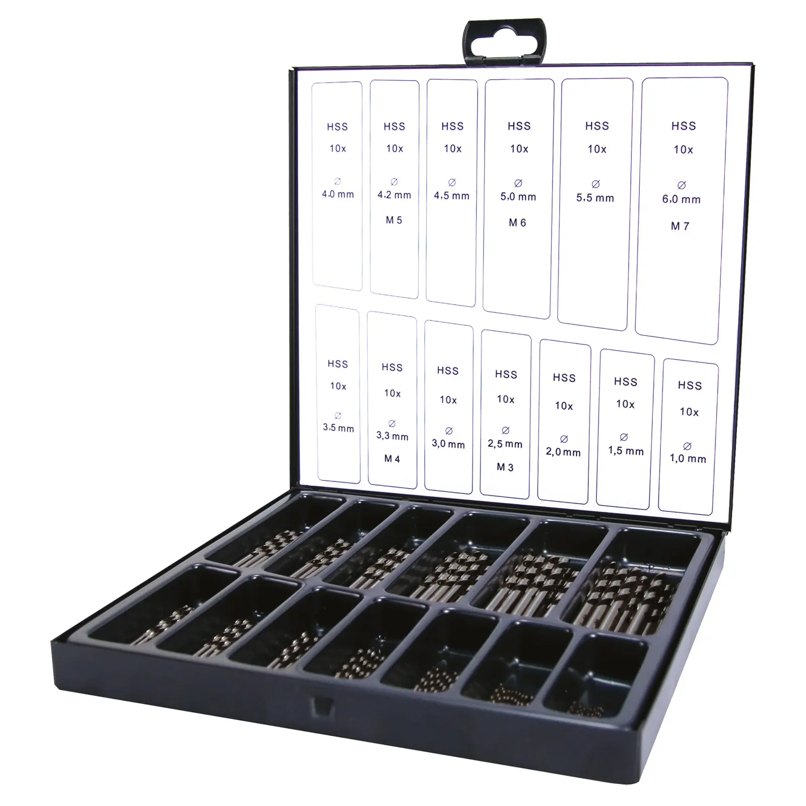 Sada 130 vrtáků v kovém kufru.vrtáky 1,0 - 6,0mm; 3,3-4,2mm