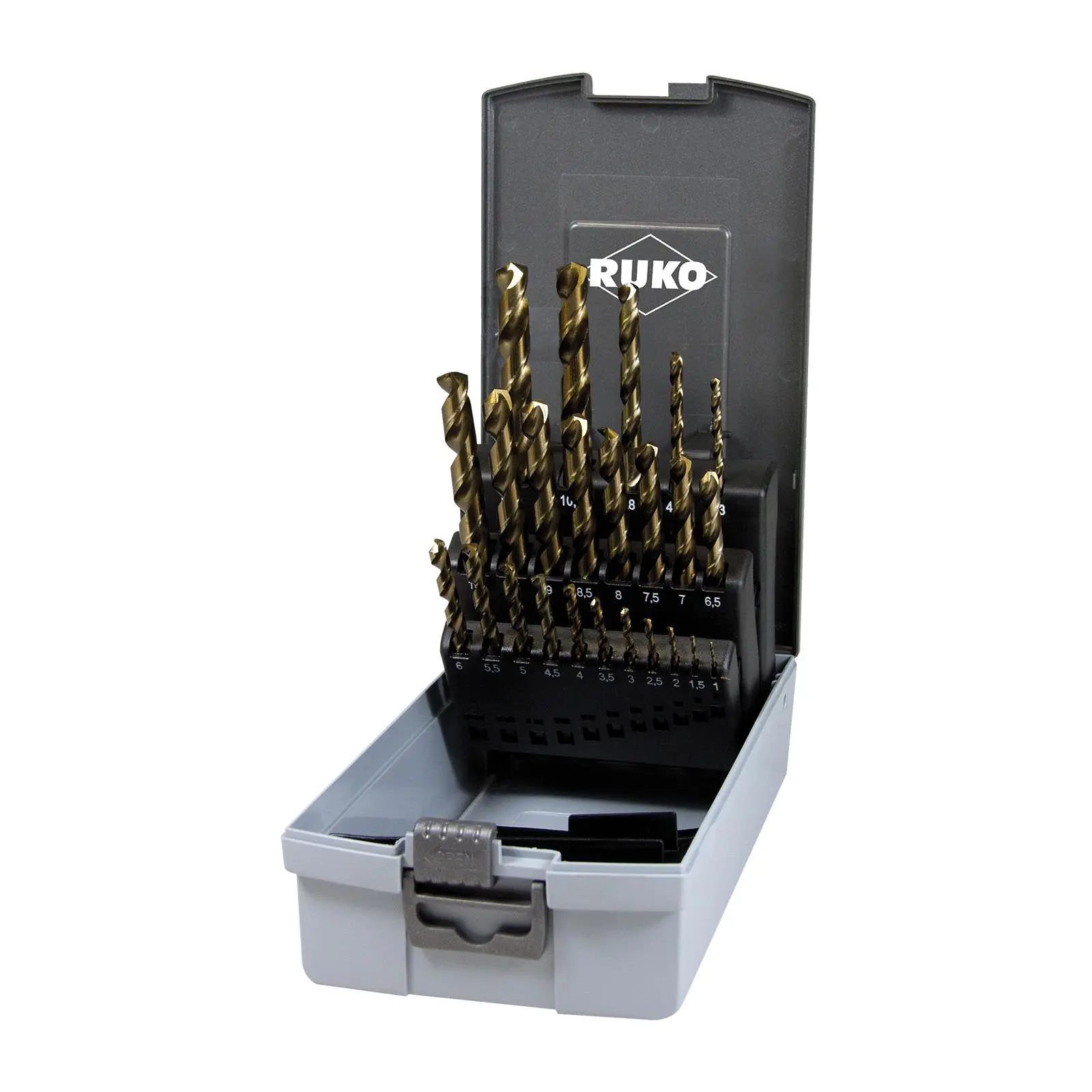 Sada 24 cobaltových vrtáků dle normy DIN 338 typu N. 1-10,5 mm v řadě po 0,5 mm + 3.3; 4.2; 6.8; 10.2 mm.