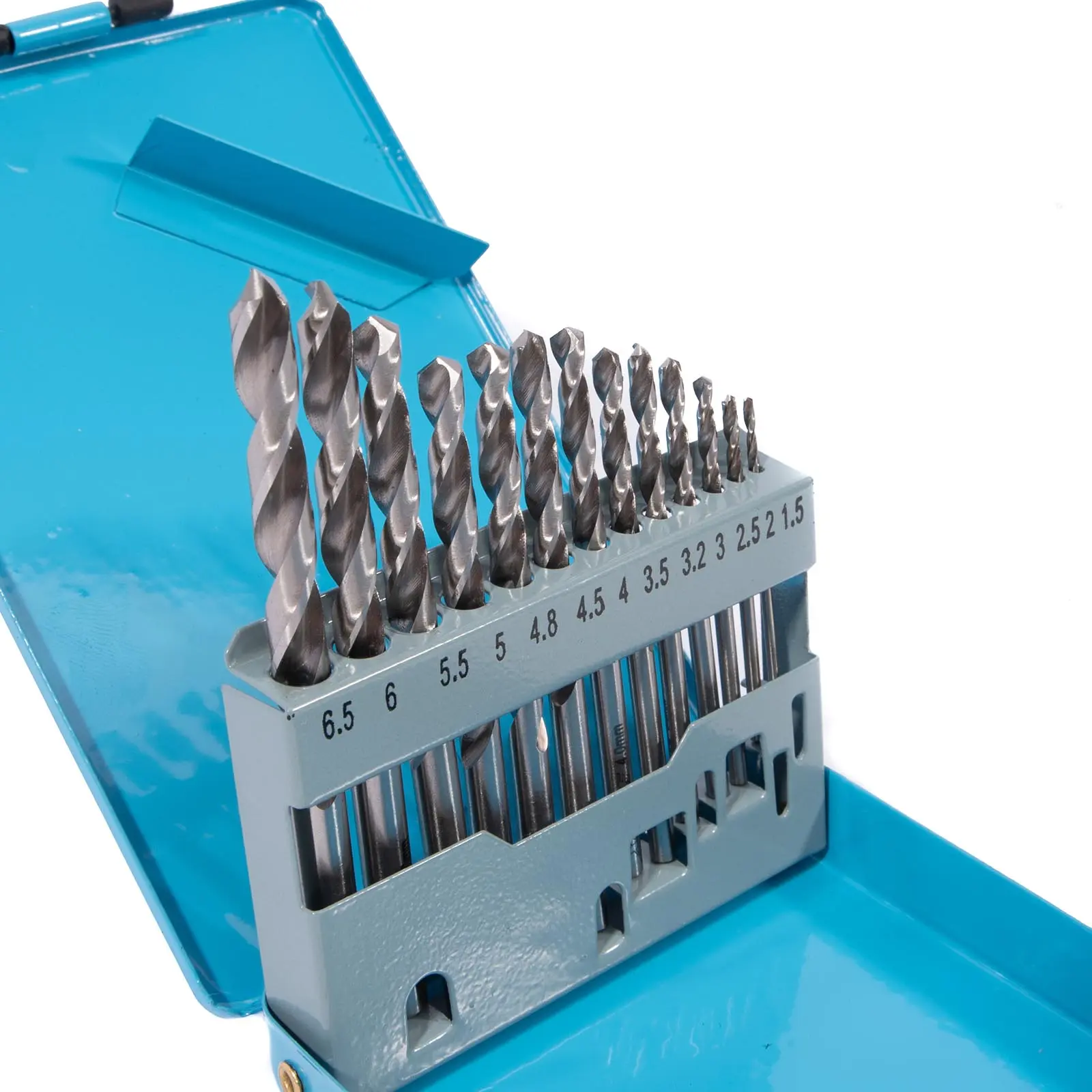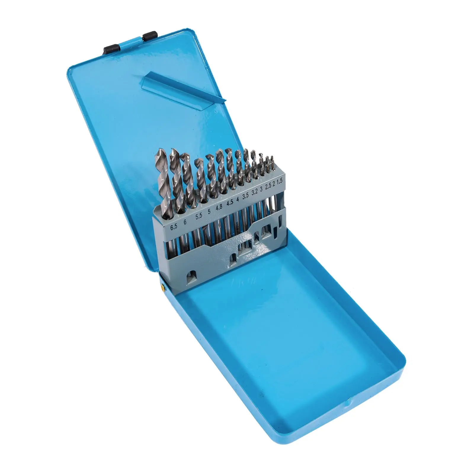 Sada vybrušovaných vrtáků HSS-G z rychlořezné oceli vyrobených dle normy DIN 338 s vrcholovým úhlem 118° pro vynikající kvalitu a přesnost vrtání. Vhodné pro vrtání různých materiálů, jako jsou legovaná i nelegovaná ocel, ocelolitina, temperovaná i tvárná litina, slitiny hliníky, bronz a mnoho dalších materiálů, u kterých hraje hlavní roli přesnost vyvrtaného otvoru. Jednotlivé rozměry vrtáků v sadě jsou odstupňovány po 0,5 mm.