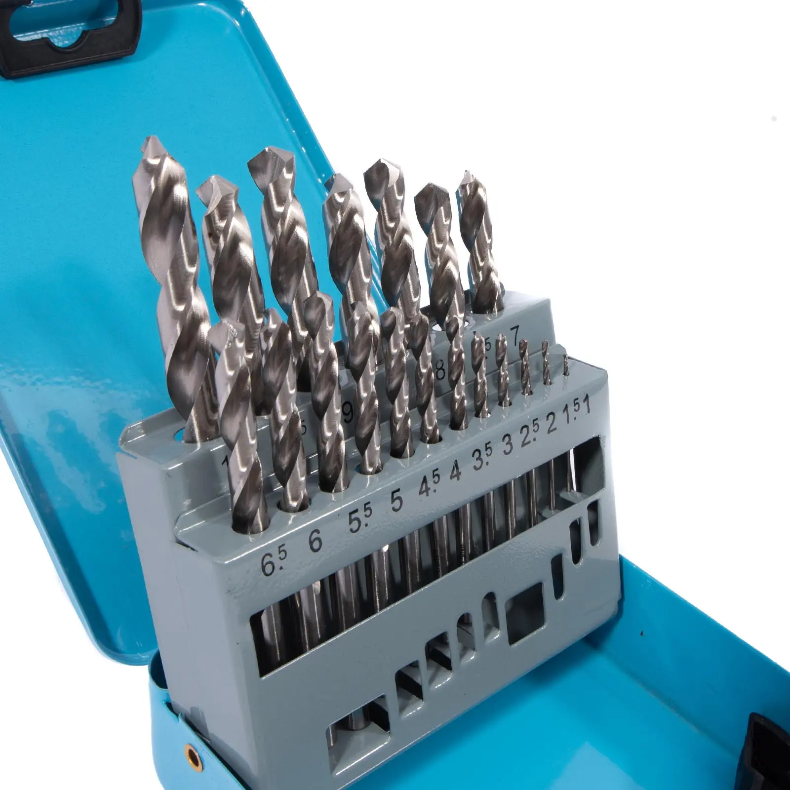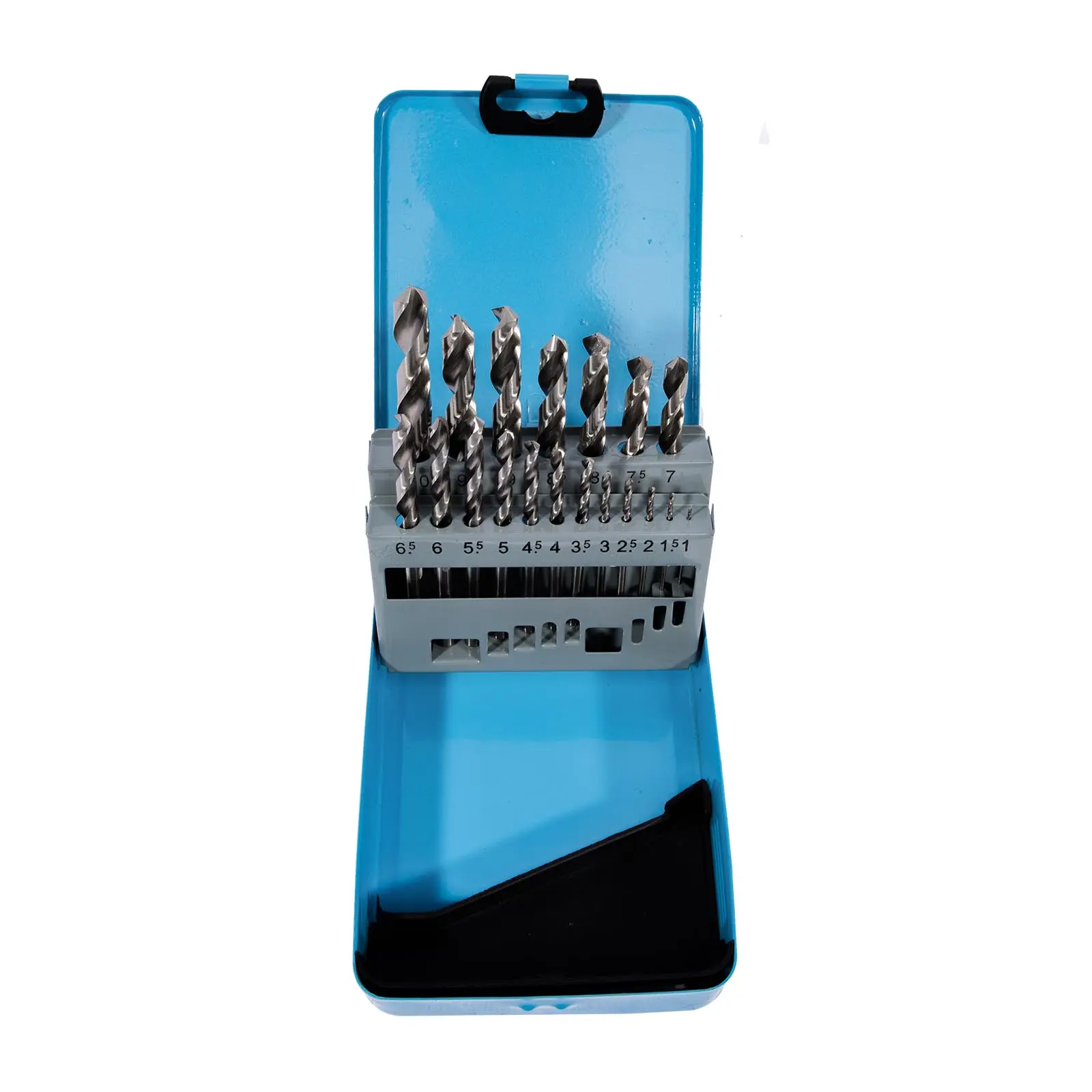Sada vybrušovaných vrtáků HSS-G z rychlořezné oceli vyrobených dle normy DIN 338 s vrcholovým úhlem 118° pro vynikající kvalitu a přesnost vrtání. Vhodné pro vrtání různých materiálů, jako jsou legovaná i nelegovaná ocel, ocelolitina, temperovaná i tvárná litina, slitiny hliníky, bronz a mnoho dalších materiálů, u kterých hraje hlavní roli přesnost vyvrtaného otvoru. Jednotlivé rozměry vrtáků v sadě jsou odstupňovány po 0,5 mm.