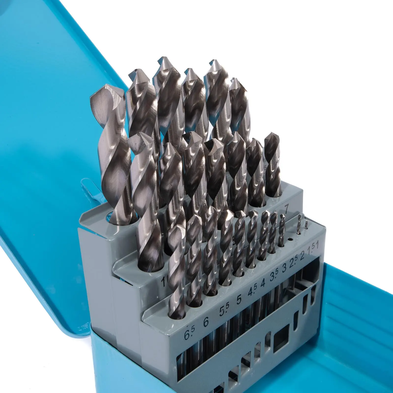 Sada vybrušovaných vrtáků HSS-G z rychlořezné oceli vyrobených dle normy DIN 338 s vrcholovým úhlem 118° pro vynikající kvalitu a přesnost vrtání. Vhodné pro vrtání různých materiálů, jako jsou legovaná i nelegovaná ocel, ocelolitina, temperovaná i tvárná litina, slitiny hliníky, bronz a mnoho dalších materiálů, u kterých hraje hlavní roli přesnost vyvrtaného otvoru. Jednotlivé rozměry vrtáků v sadě jsou odstupňovány po 0,5 mm.