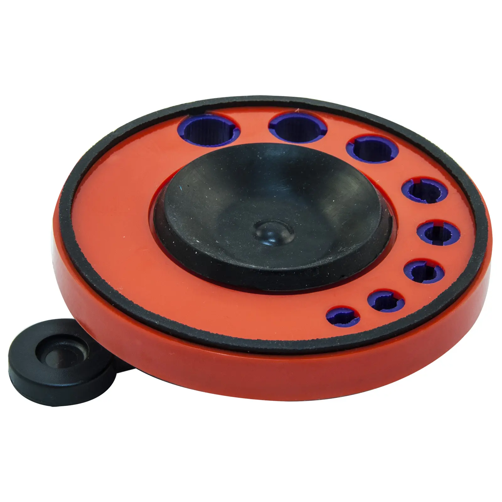 Vodící přípravek pro přesné vrtání do hladkých povrchů díky fixaci vrtáku na požadovaném místě. Přísavka zajišťuje dobrou přilnavost k povrchu. Možnost připojení vodního chlazení.
