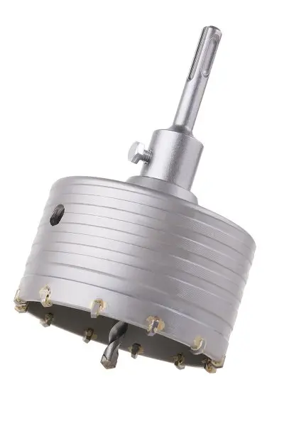 • vykružovací / vrtací korunka s SK plátky a vodícím vrtákem