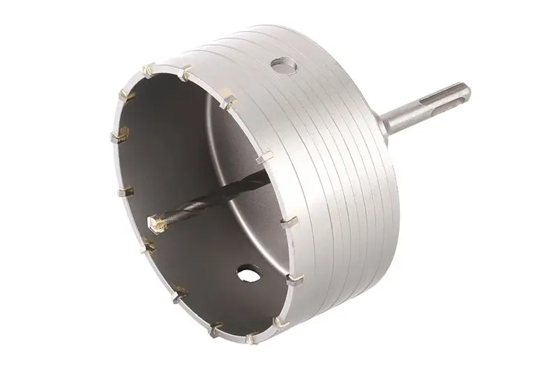 • vykružovací / vrtací korunka s SK plátky a vodícím vrtákem