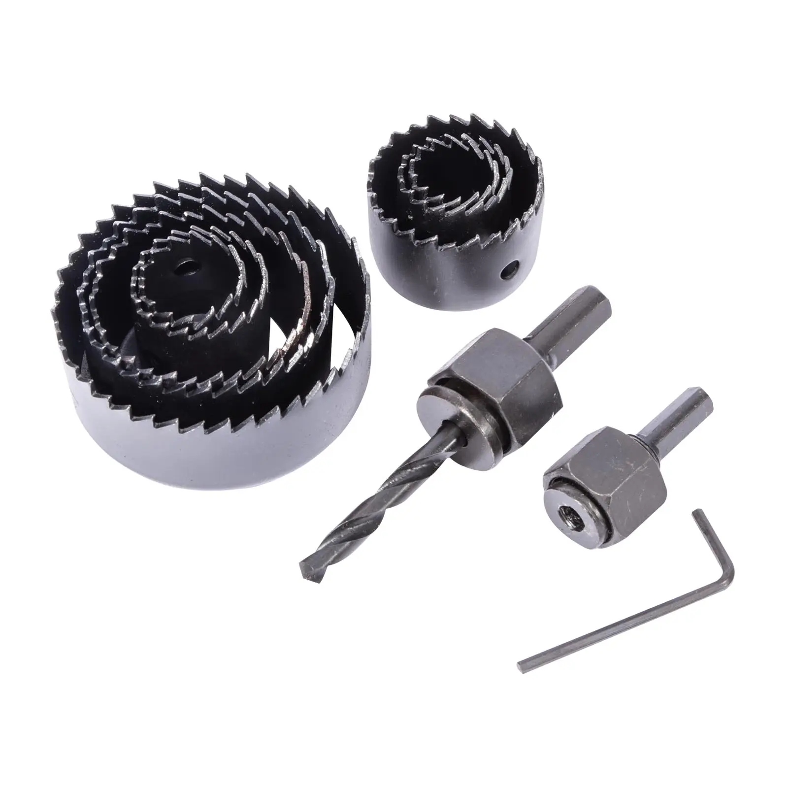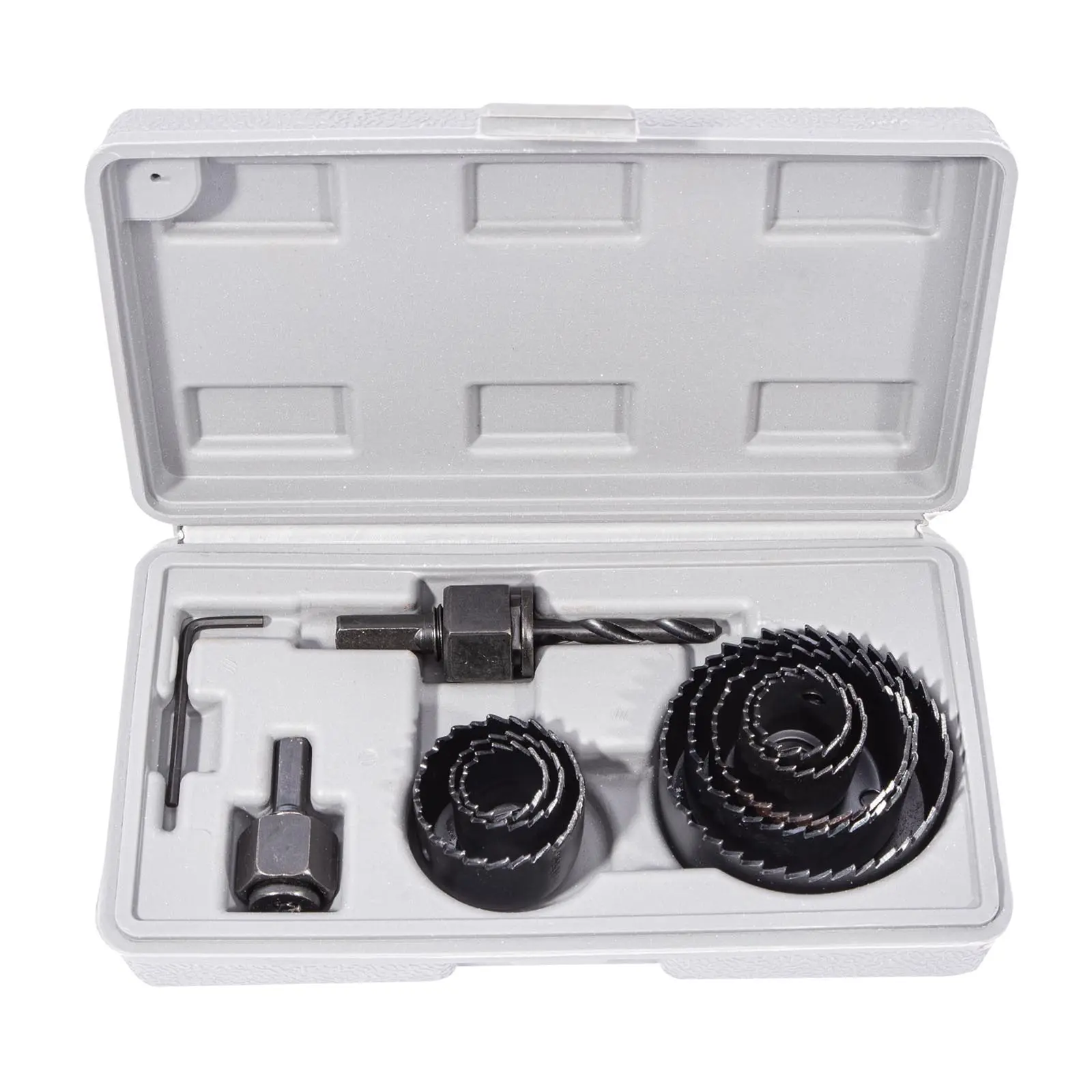 držák korunek (2x) s vodícím vrtákem (1x), imbus klíč, vykružovací korunky