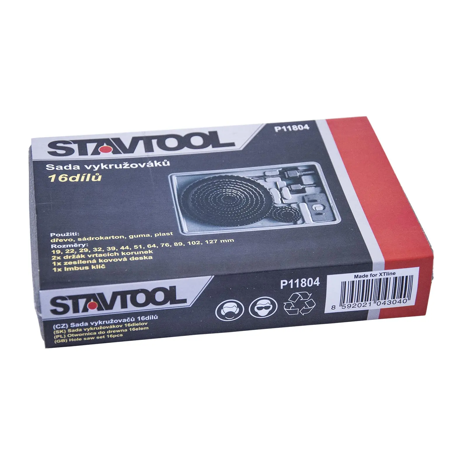 2x držák korunek, vodící vrták, imbus klíč, vykružovací korunky 19-127 mm