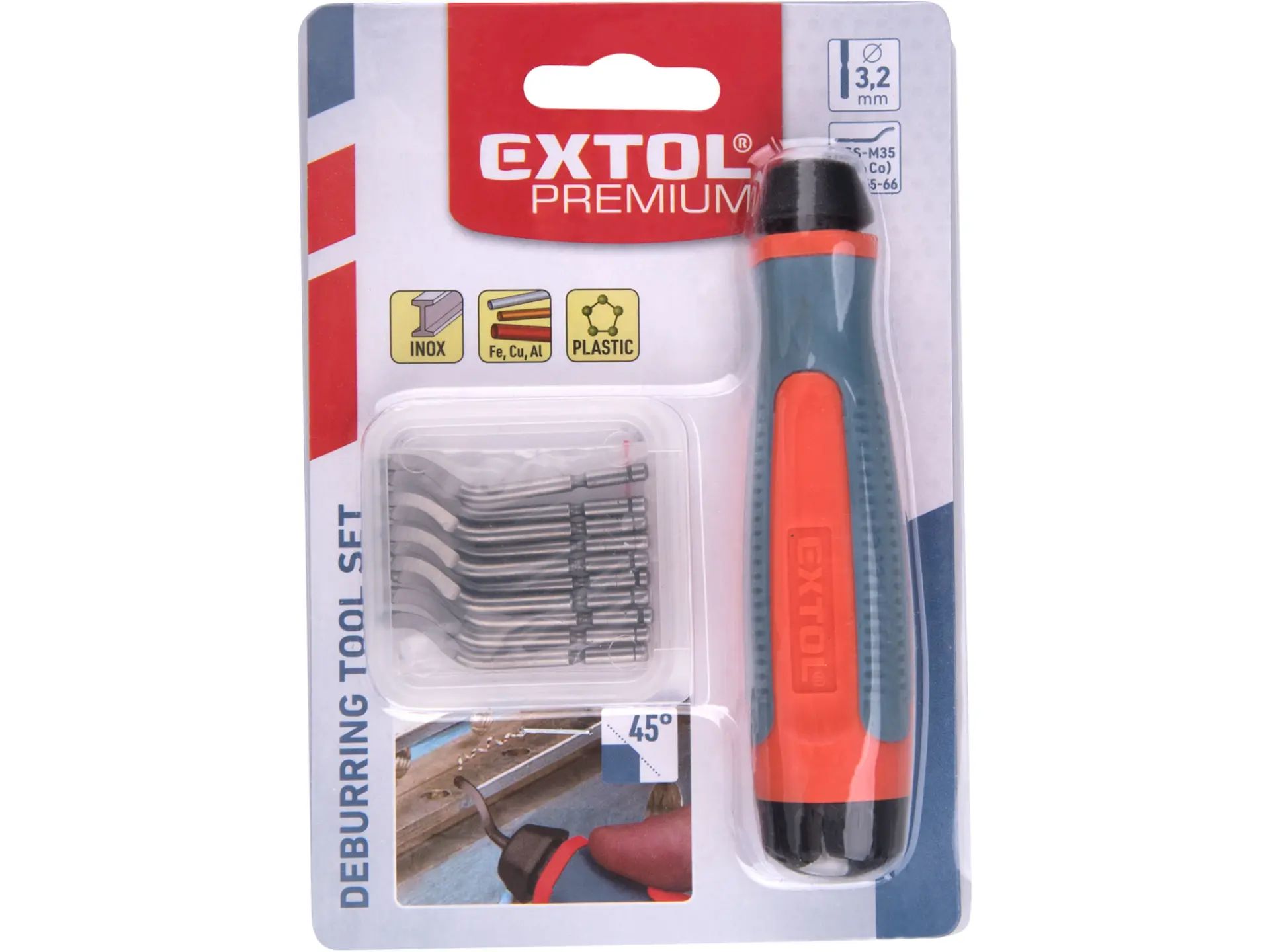 • čepelky jsou vyrobeny z extra tvrdého materiálu HSS M35 (5% Co) o tvrdosti HRC 65-66 a jsou vhodné ke srážení hran u nerezové oceli, oceli, měkkých kovů, plastů atd.
