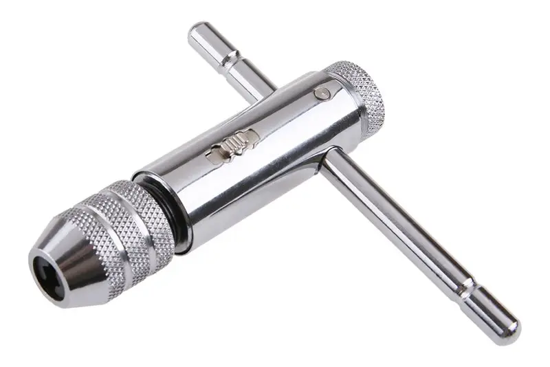 Ráčnové vratidlo pro práci se závitníky, použití: k uchycení závitníků, M3 - M8, ráčnový mechanismus i tvar pomahá při řezání závitu na méně přístupných místech, nastavení směru otáčení (pravý, levý, aretace), kvalitní materiály i přesné zpracování.
