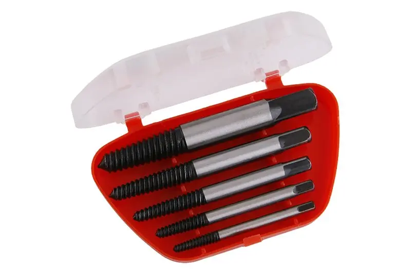 5-ti dílná sada vytahováků šroubů pro hobby použití, použití: k vytahování zlomených a zalomených šroubů, závitových tyčí...., nutné předvrtání, díky opačné šroubovici postupným zavrtáním do otvoru dojde k vyšroubování popř vytočení zalomeného dílu, rozměry: 4, 4.5, 6, 7.5, 11 mm, praktický plastový box pro uložení.