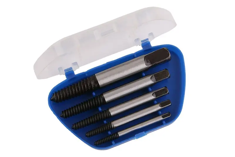 5-ti dílná sada vytahováků šroubů FESTA, použití: k vytahování zlomených a zalomených šroubů, závitových tyčí...., nutné předvrtání, díky opačné šroubovici postupným zavrtáním do otvoru dojde k vyšroubování - popř. vytočení zalomeného dílu, pro profesionální použití, rozměry: 4, 4.5, 6, 7.5, 11 mm, praktický plastový box pro uložení.